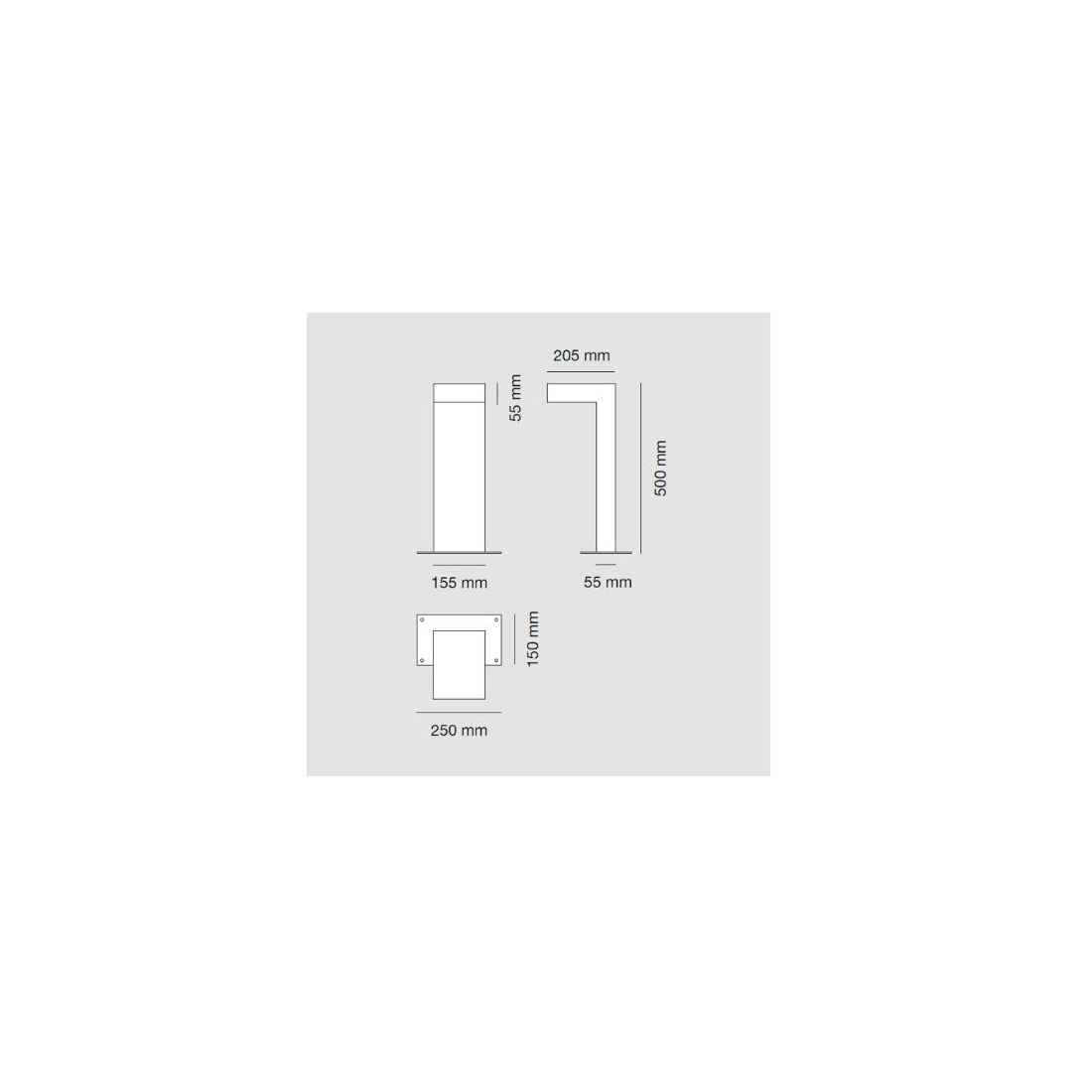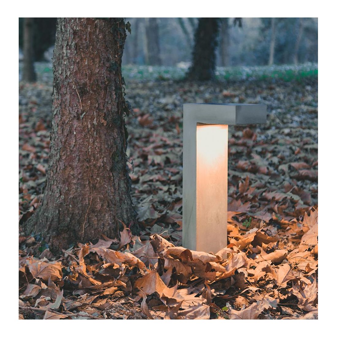 Elle è un palo da esterno, prodotto con un altezza di cm 50 oppure con altezza di cm 80.5 (a scelta), con una struttura a forma di parallelepipedo con testa rettangolare che viene realizzato con un materiale innovativo chiamato BETALY® disponibile in ben 6 diverse colorazioni, a scelta, tra Bianco, Nero, Verde, Corten, Grigio e Sabbia; la base del paletto viene realizzato, invece, in acciaio inox.