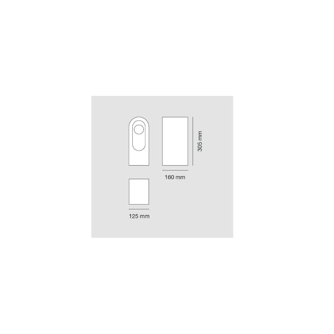 La sua forma è stata ottenuta per sottrazione in quanto ha una sommità a tutto tondo, funzionale per la defluizione dell'acqua, e diventa forma generatrice per l'intaglio simmetrico dentro la quale trova posto la sorgente luminosa a led da 4w con una luce bianca calda 3000k e una resa luminosa di 630 lumen.