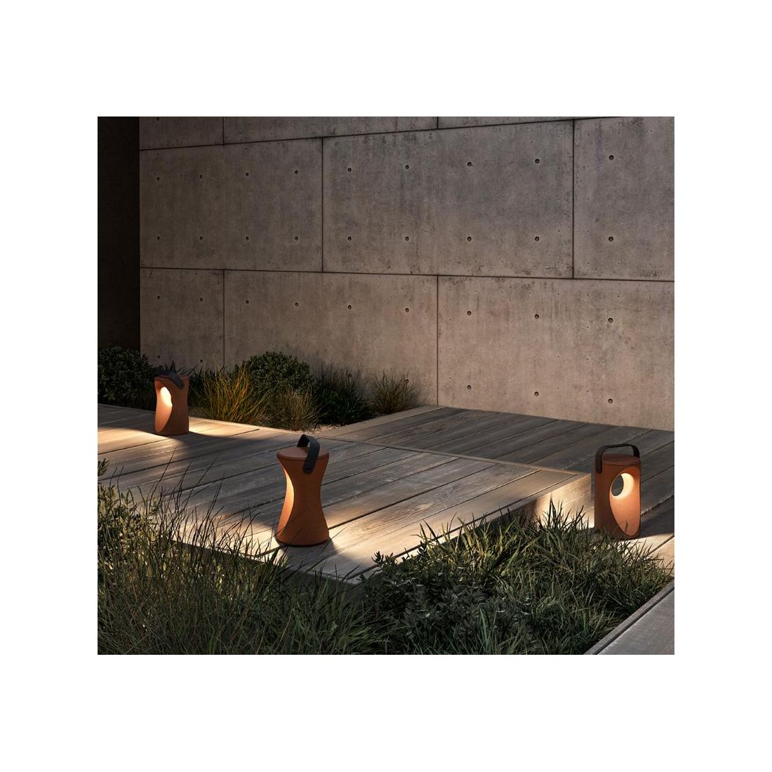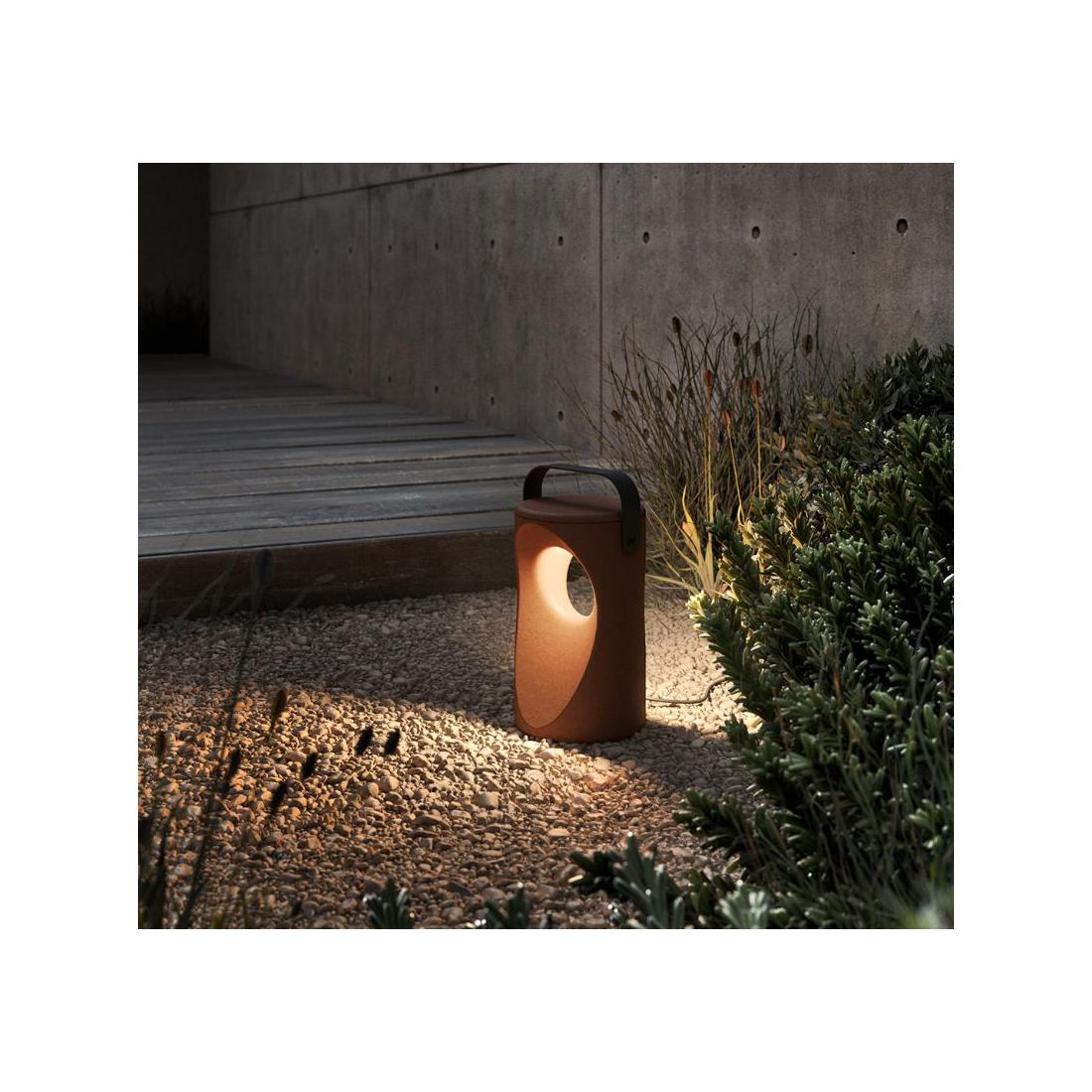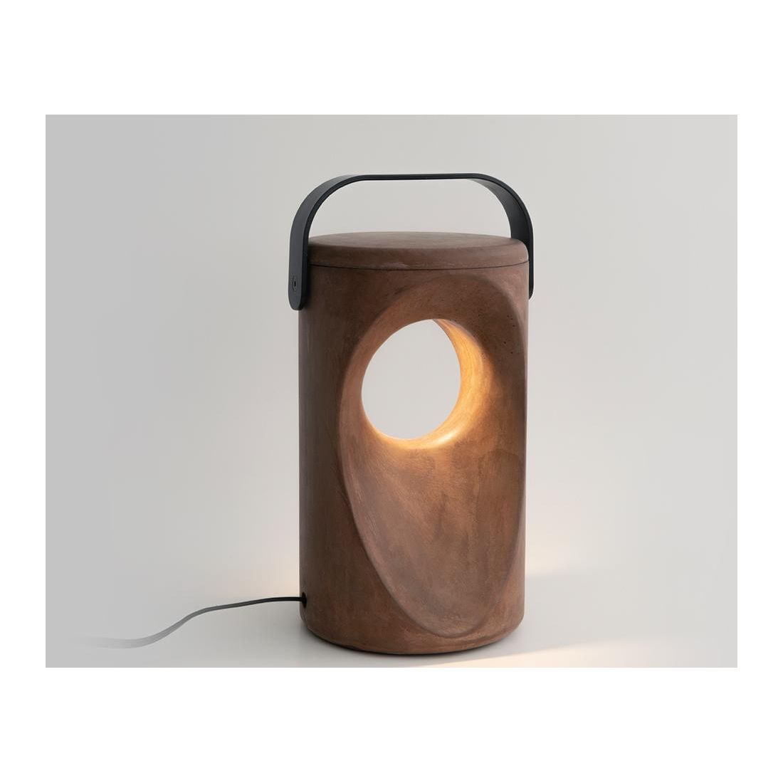 Vima è una lampada portabile da terra che reinterpreta una lanterna antica, utilizzabile in ambienti esterni sia come segnapasso che come lampada decorativa. La sua luce taglia il volume cilindrico recesso e restituisce un’illuminazione calda e diffusa che favorisce il comfort visivo.