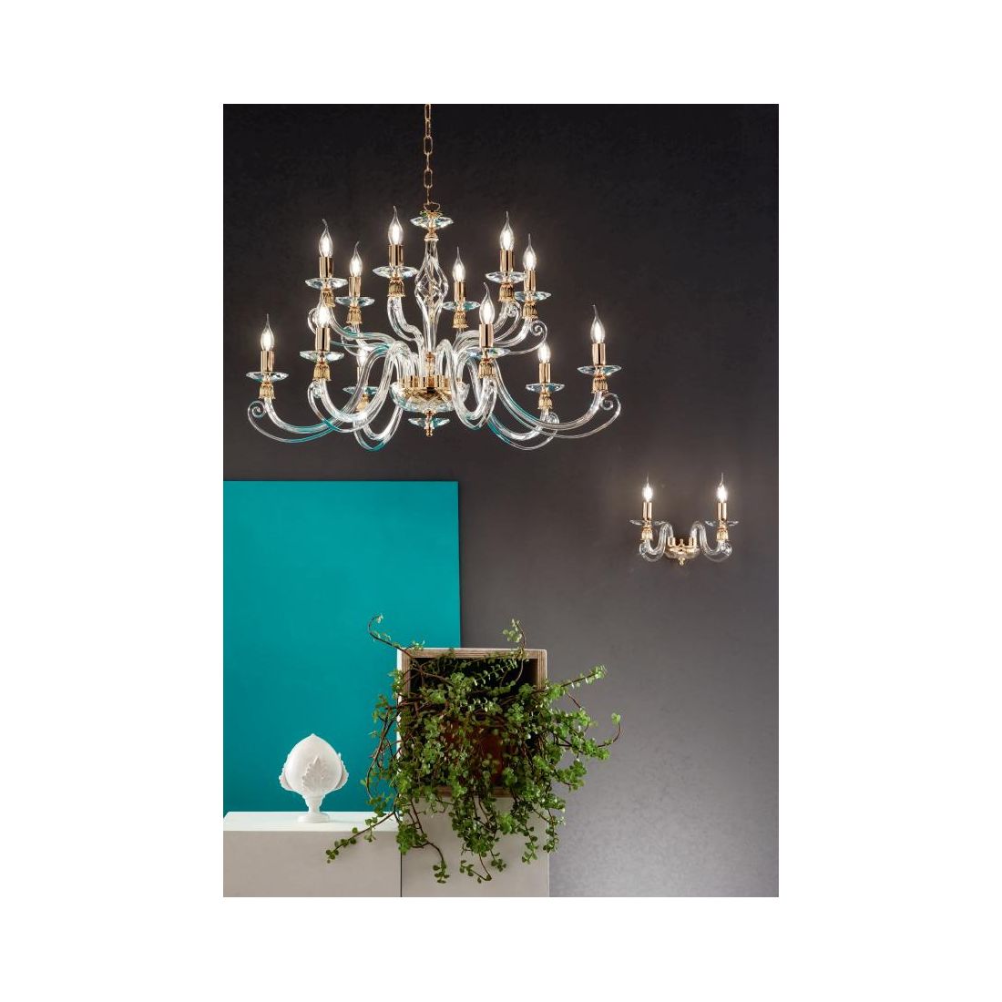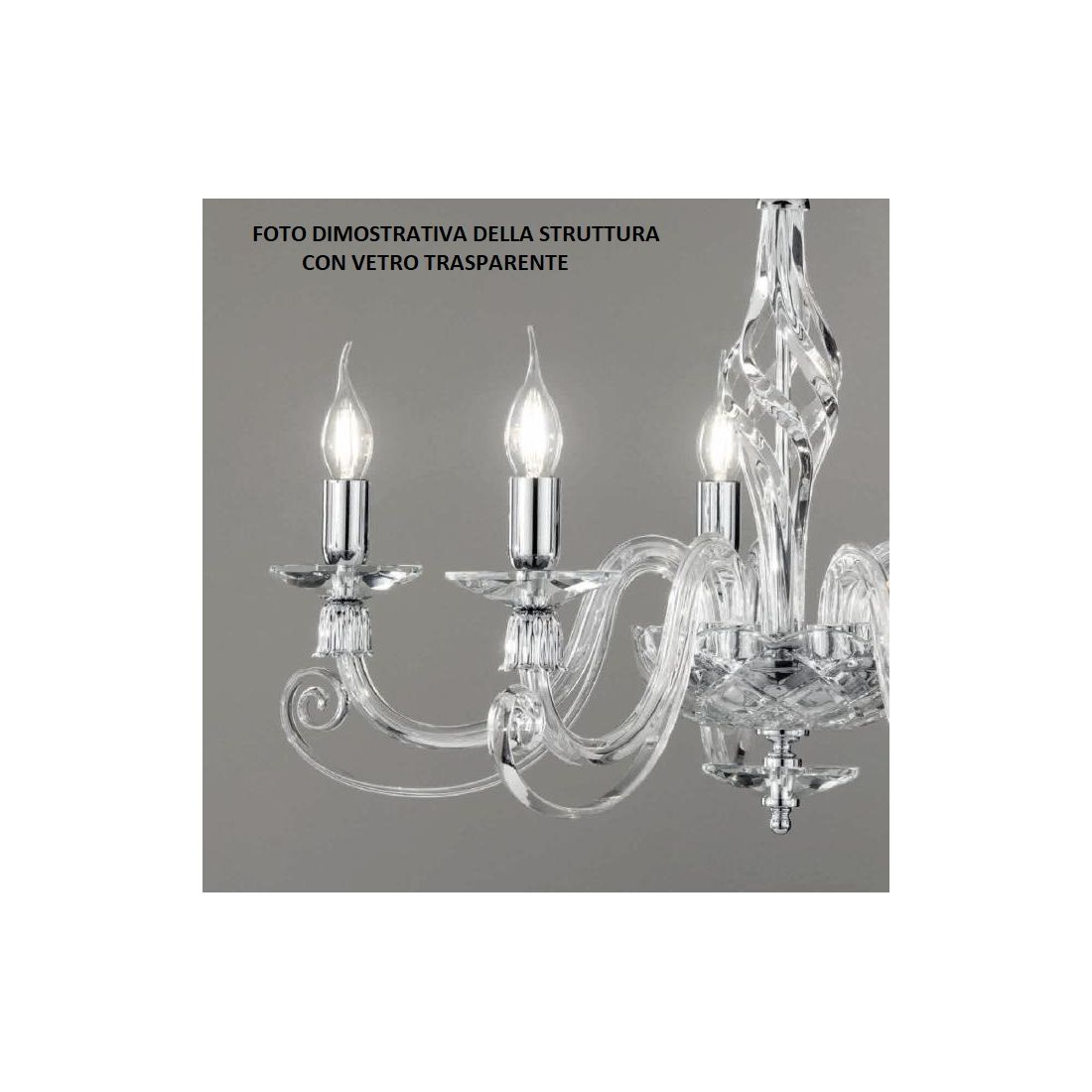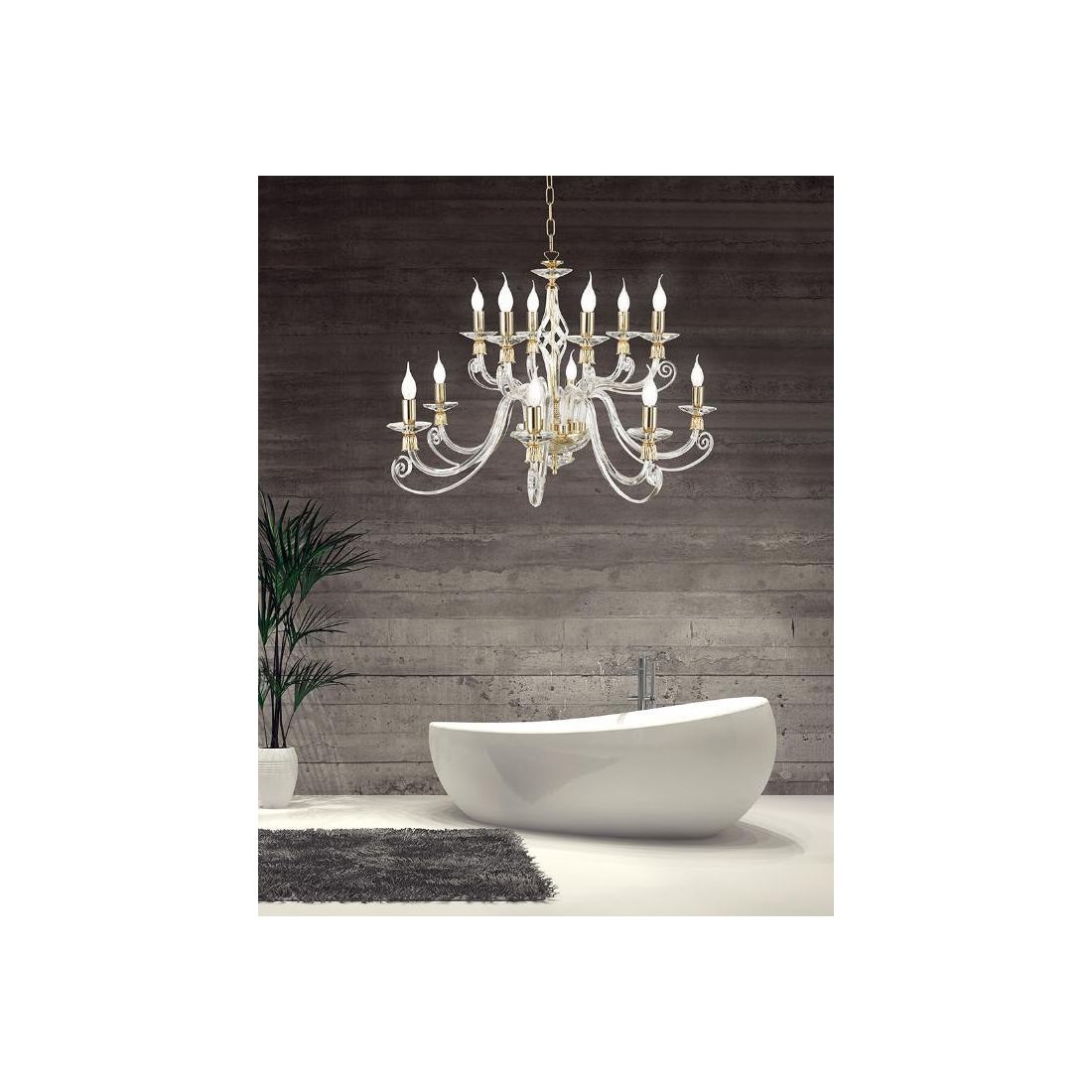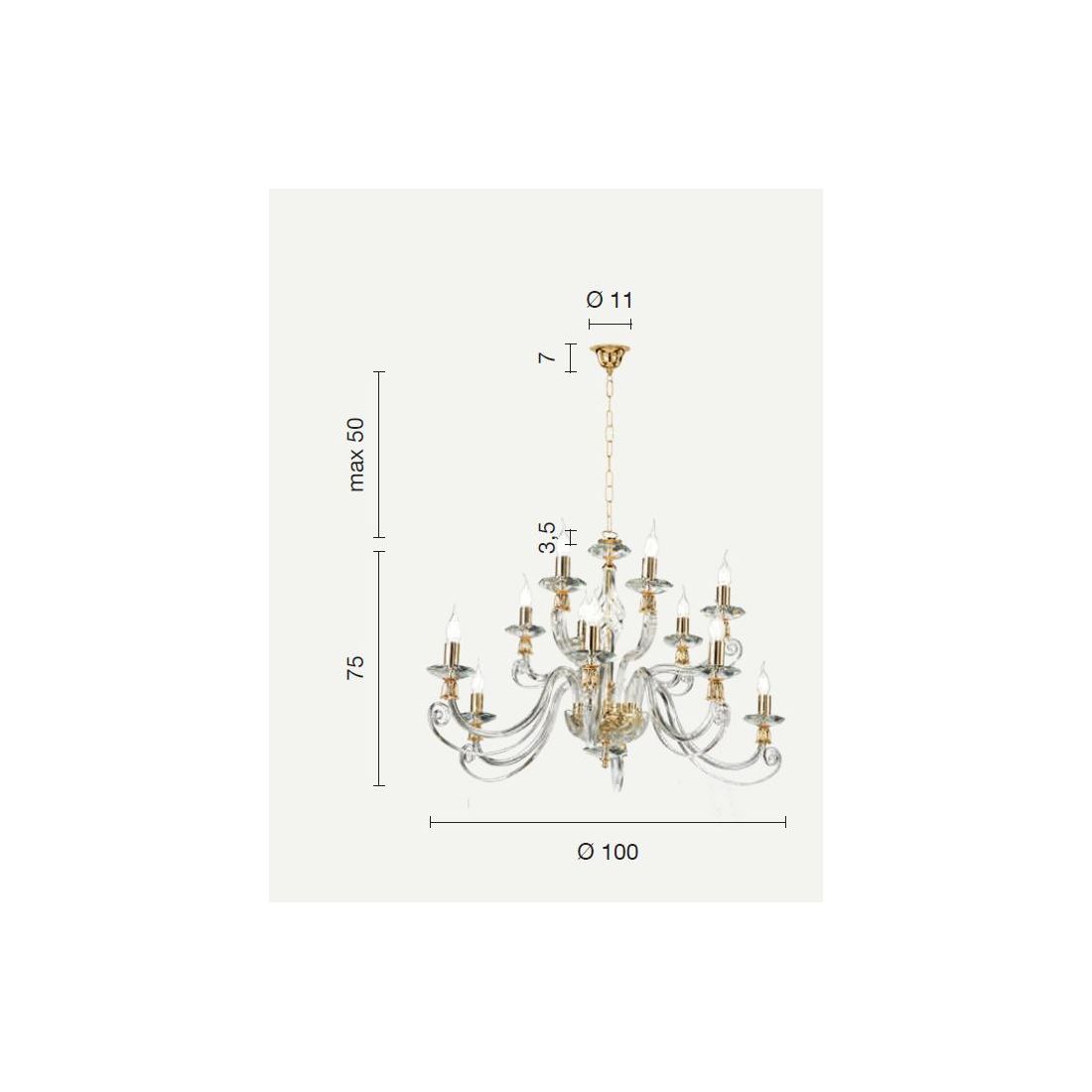 1306 LAMPADARIO CLASSICO A CANDELABRO 12 LUCI VETRO SOFFIATO E CRISTALLO 5 FINITURE