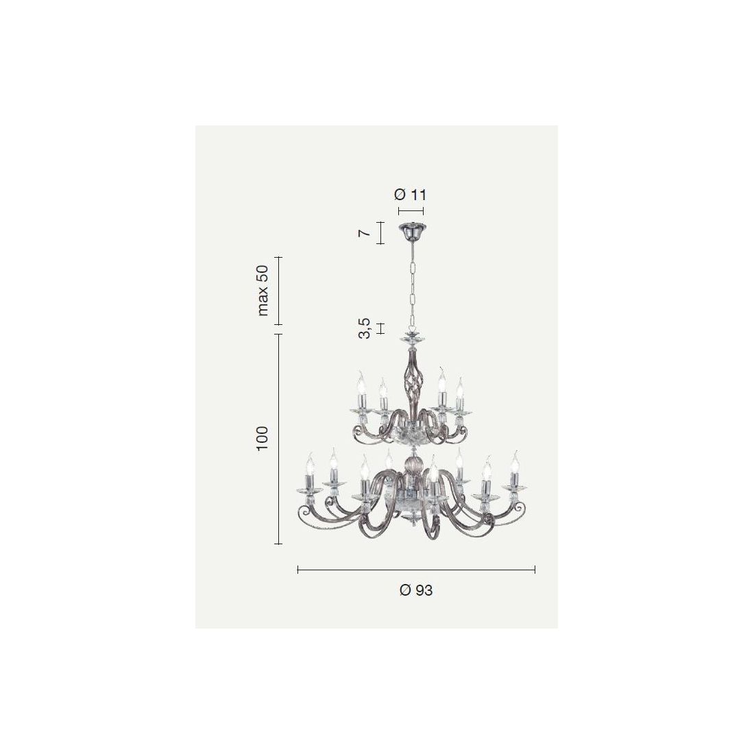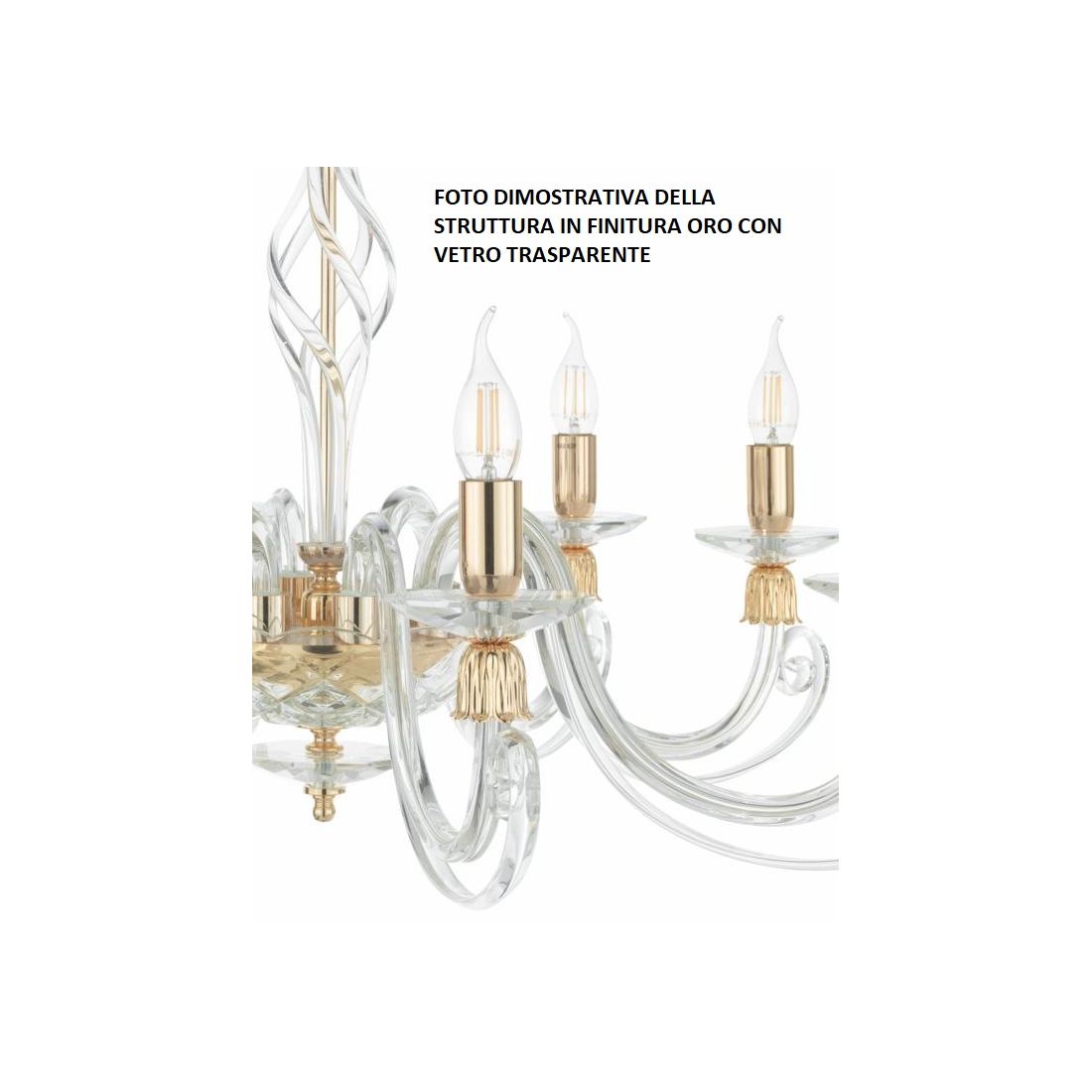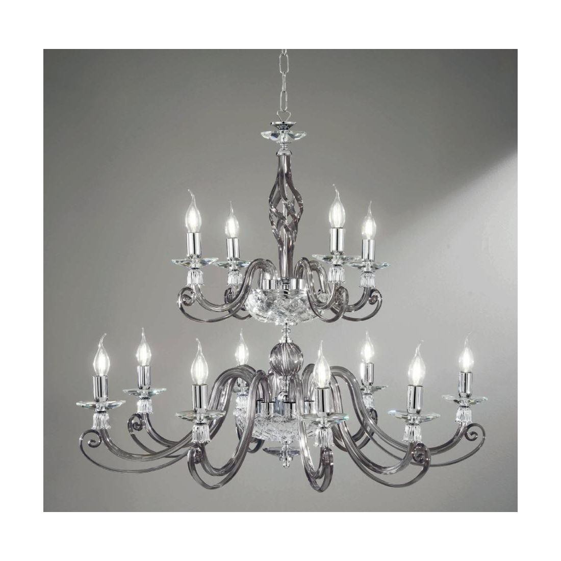 1306 LAMPADARIO CLASSICO 12 LUCI IN VETRO SOFFIATO E CRISTALLO 5 FINITURE COLORE DI...
