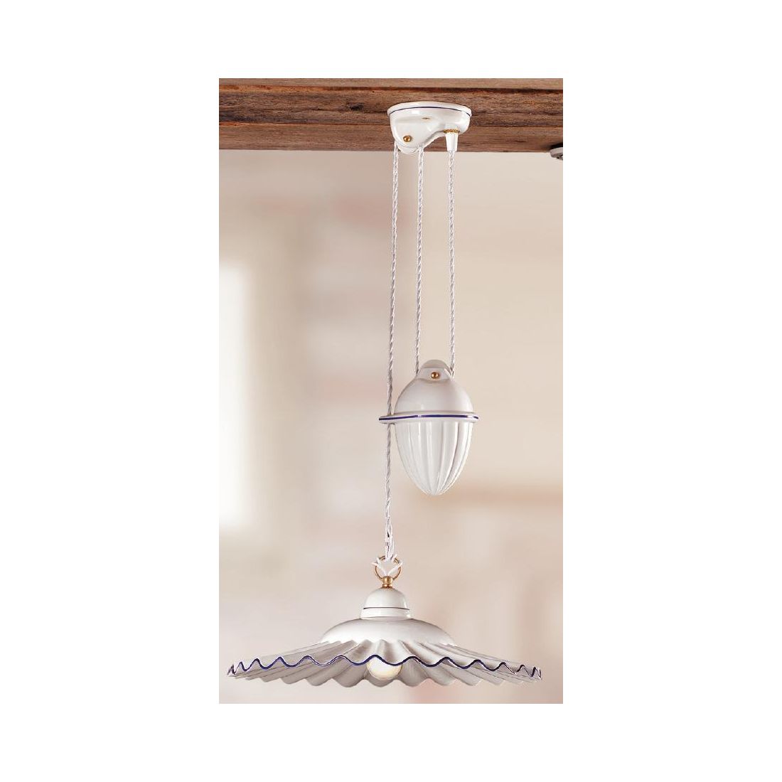 Richiedi informazioni per 2018.1 SOSPENSIONE SALISCENDI D43 CM IN TERRACOTTA BIANCA LUCIDA CON BORDO DECORATO MADE IN ITALY