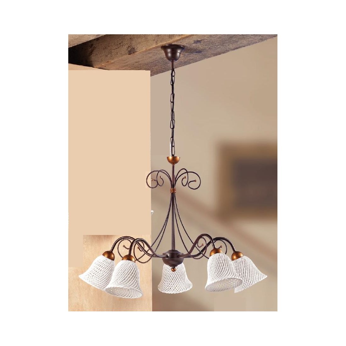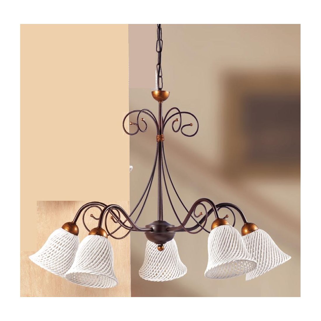 2032.5 LAMPADARIO RUSTICO 5 LUCI IN FERRO RUGGINE E DIFFUSORI IN TERRACOTTA BIANCA INTRECCIATA MADE IN ITALY CRISTALENSI CERAMIC