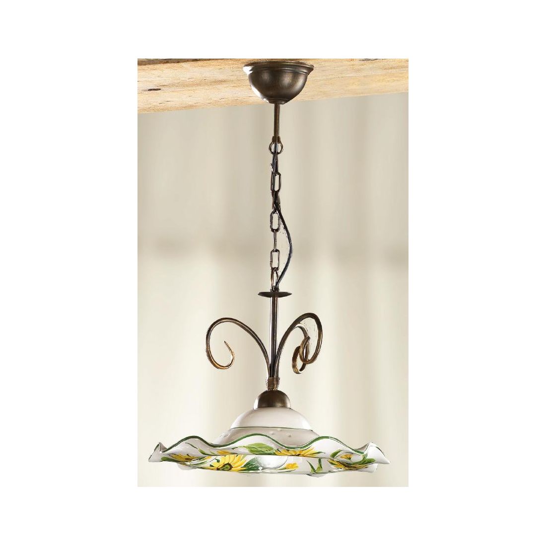 2213.1 SOSPENSIONE SINGOLA IN METALLO RUGGINE CON DIFFUSORE IN TERRACOTTA DECORATA CON GIRASOLI MADE IN ITALY CRISTALENSI CERAMI