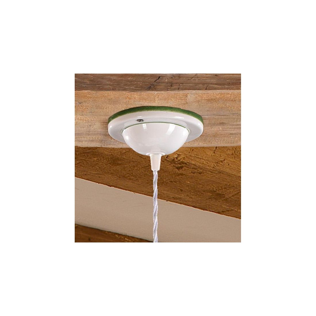 Il lampadario è munito di cavo a treccia di seta bianco e le decorazioni della ceramica sono realizzate a mano con la tecnica della decalcomania.