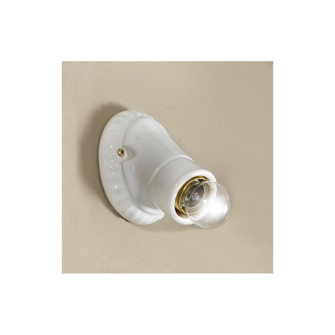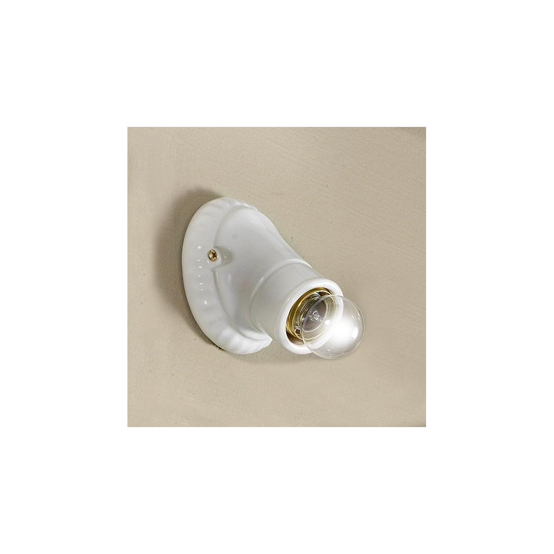 Mini spot da parete obliquo, dallo stile rustico e country, realizzato interamente in terracotta bianca lucida con un diametro di soli cm 10 composto da una base a muro ovale sulla quale va inserita la lampadina che rimane a vista (non fornita).