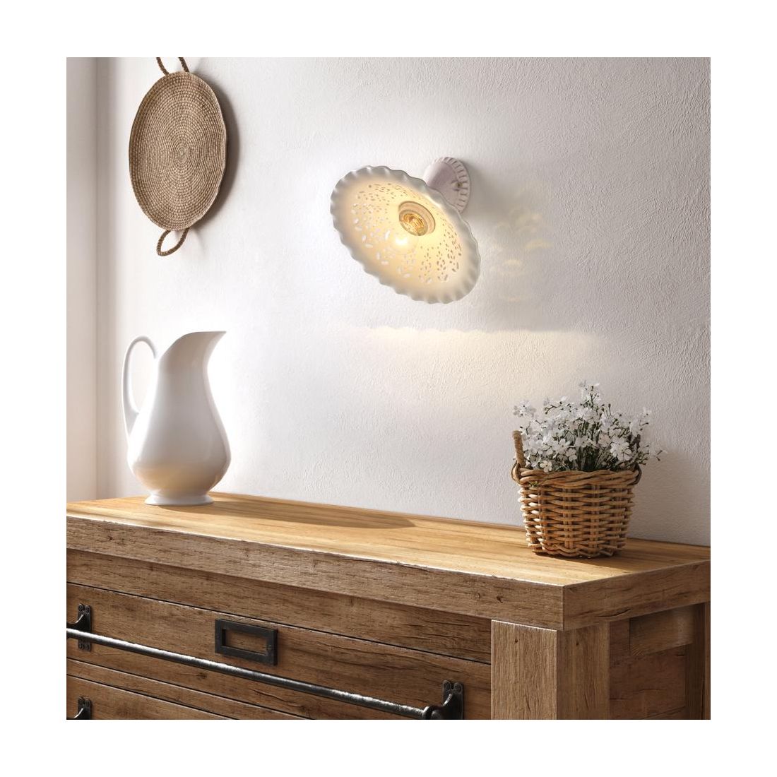 2259 PLAFONIERA RUSTICA IN 2 MISURE PRODOTTA IN TERRACOTTA TRAFORATA FINITURA ANTICATA...