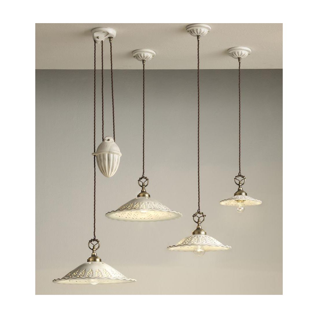 2259 SOSPENSIONE SINGOLA IN 3 MISURE RUSTICA IN TERRACOTTA TRAFORATA FINITURA ANTICATA...