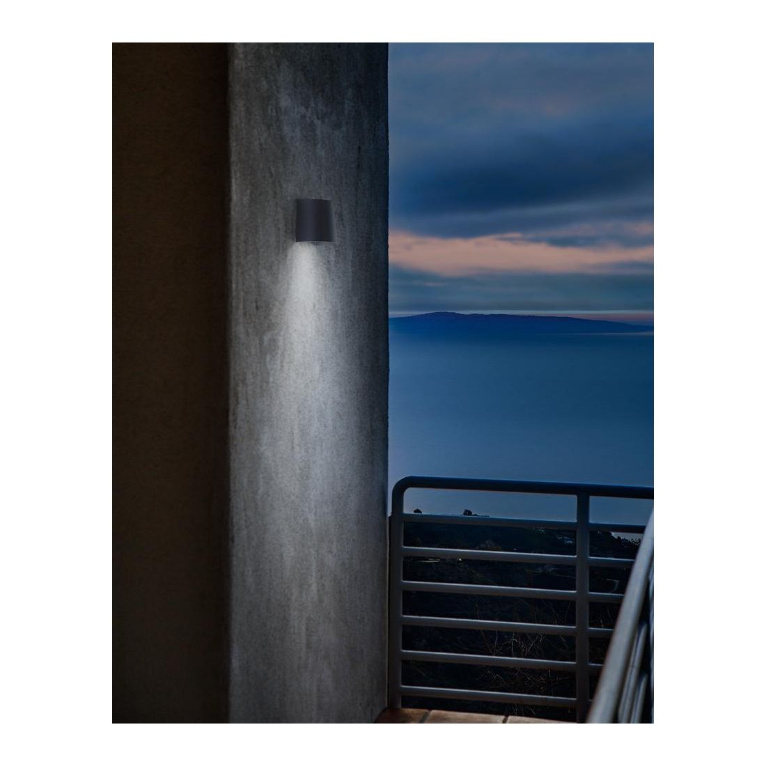 Lampada da parete, dal design moderno, che si presenta con una struttura conica realizzata interamente in materiale plastico PC/ABS nei colori Bianco oppure Antracite (a vostra scelta) che emana una luce rivolta esclusivamente verso il basso.