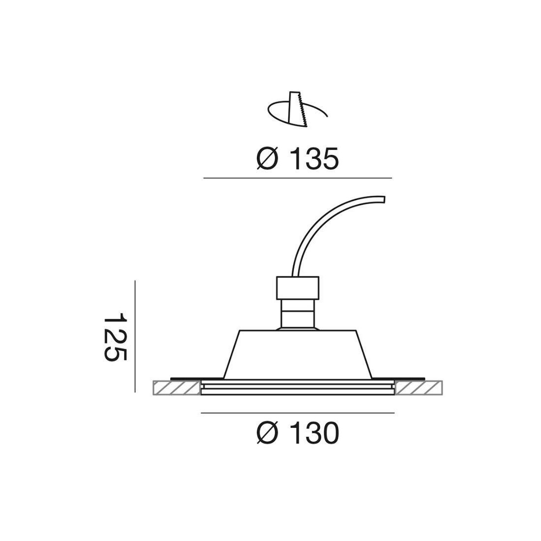 Viene realizzato con struttura in gesso verniciabile, da montare su soffitti in cartongesso; il foro da praticare per l'incasso deve essere con diametro di cm 13,5.