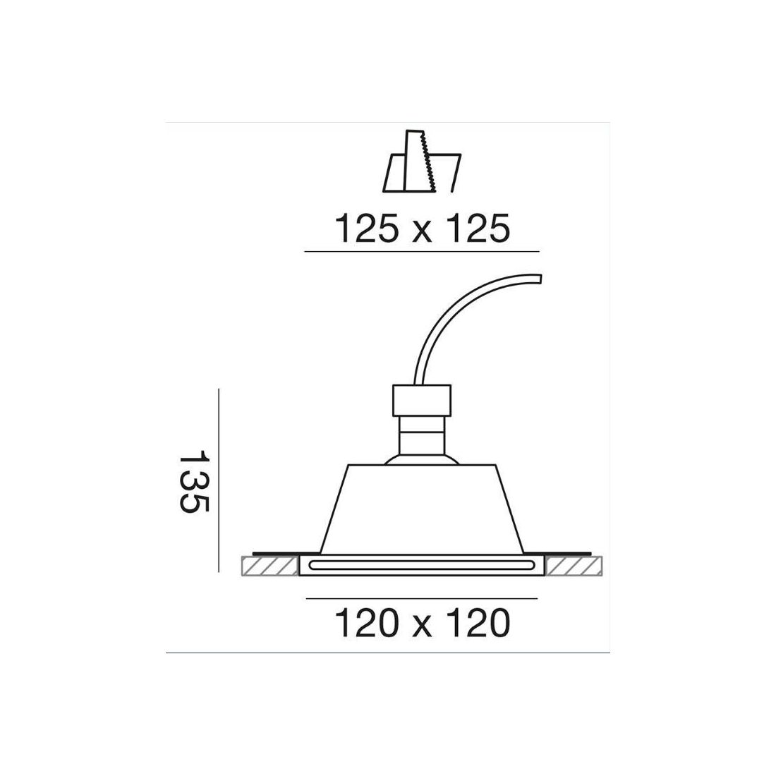Faretto da incasso, di forma quadrata, adatto per l'illuminazione di salotti, soggiorni, cucine, ingressi o corridoi ma anche per uffici o locali commerciali come negozi, ristoranti o bar.