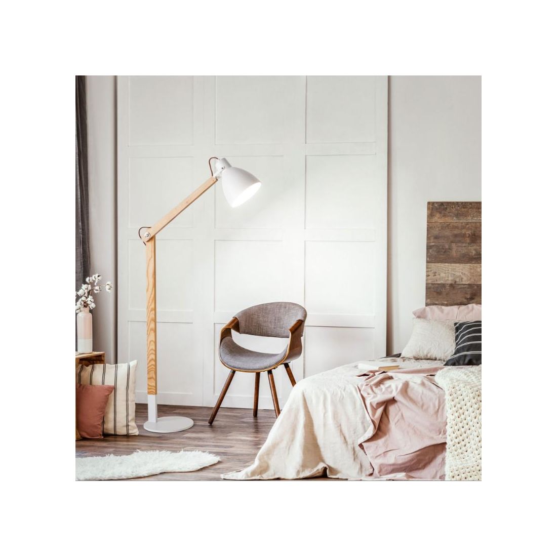 3644 - 113644-11 SVEVA PIANTANA ORIENTABILE IN LEGNO E METALLO NERO O BIANCO DI FABAS LUCE