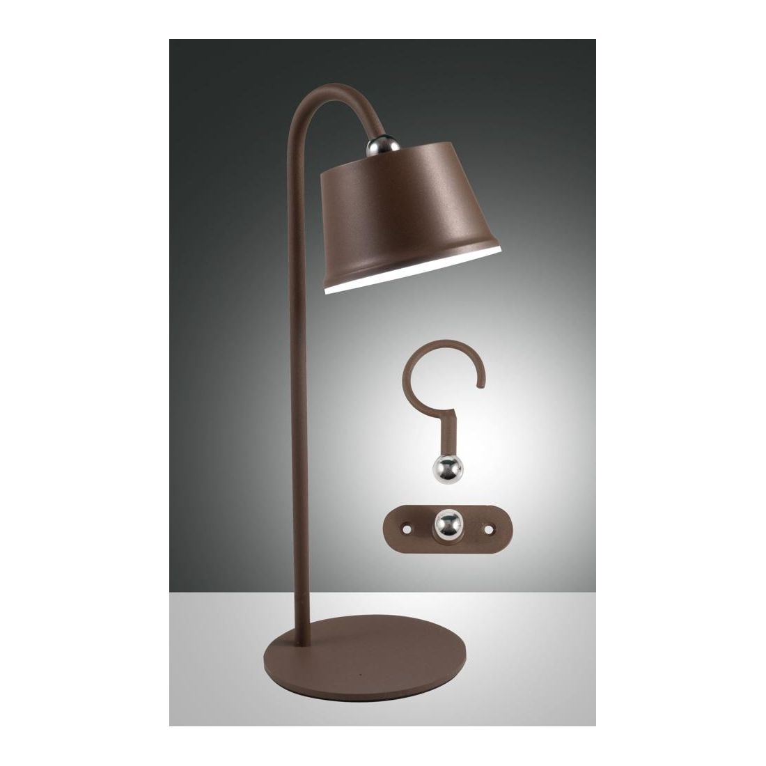 Armanda è una lampada da tavolo portatile composta da un piedistallo sottile in metallo e da diffusore, con una forma a campanella, in policarbonato, entrambi realizzati in tre diverse finiture, a scelta, tra Nero, Bianco oppure Corten.