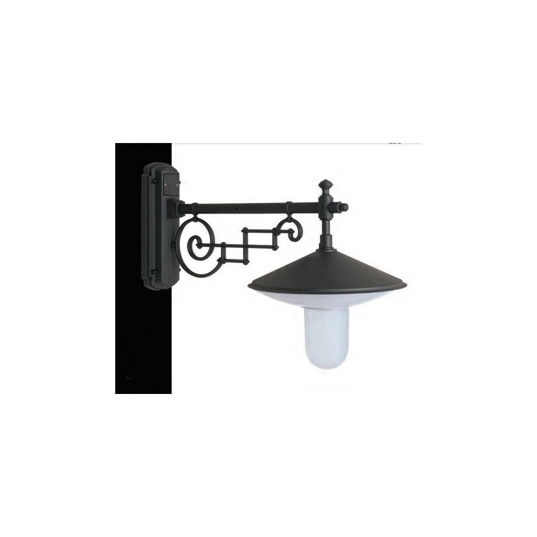 Lampada da parete dallo stile classico, ideata per l'installazione a parete in ambienti esterni, un prodotto 100% Made in Italy, che si presenta con una struttura con braccio dritto e con un piatto realizzati in alluminio pressofuso verniciato a polveri in forno, disponibile nei colori Antracite o Nero (a vostra scelta).