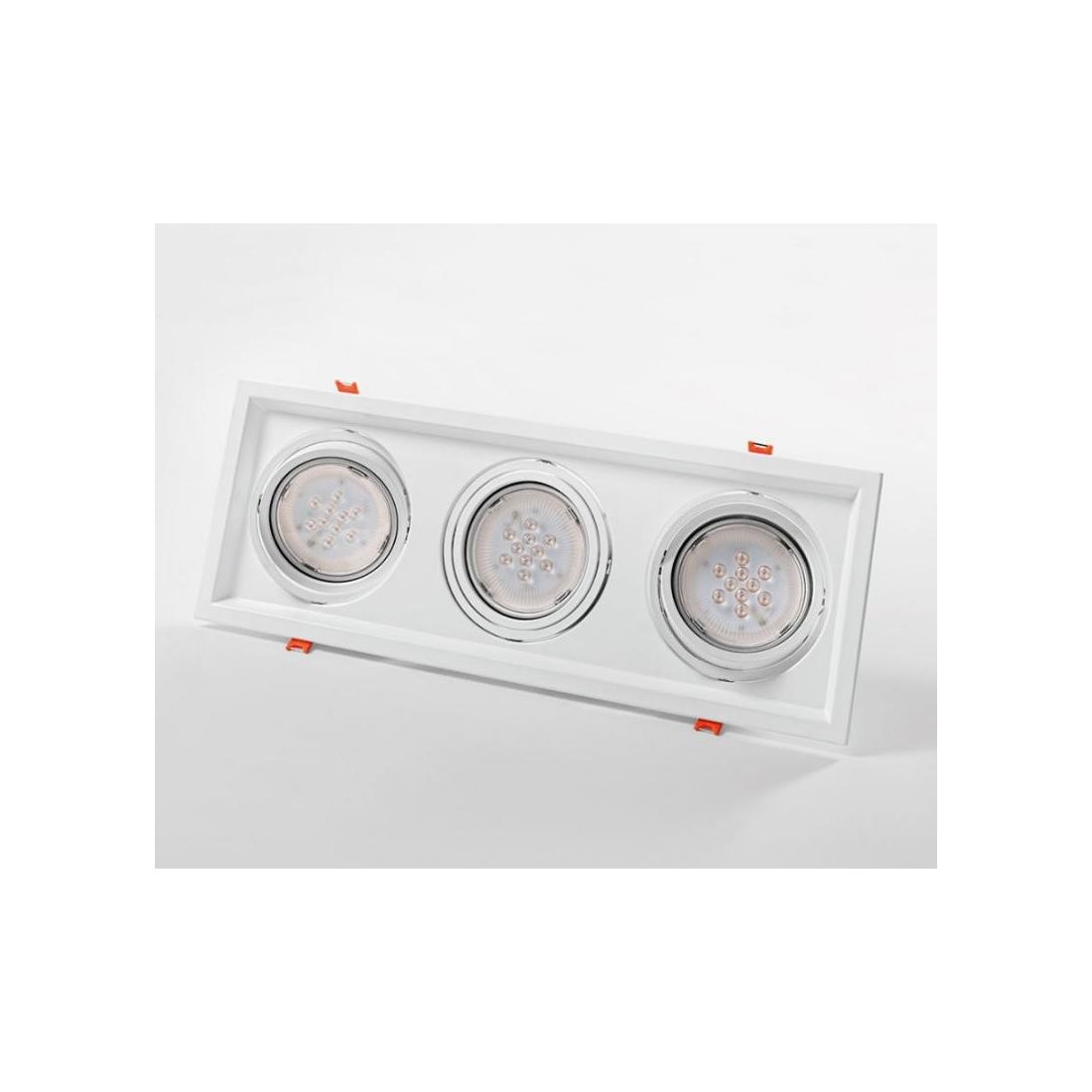 704704 FARETTO TRIPLO ORIENTABILE DA INCASSO IN METALLO BIANCO CON PORTALAMPADE PER LAMPADINA GU10-AR111