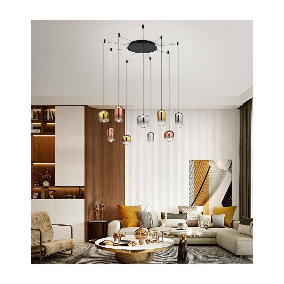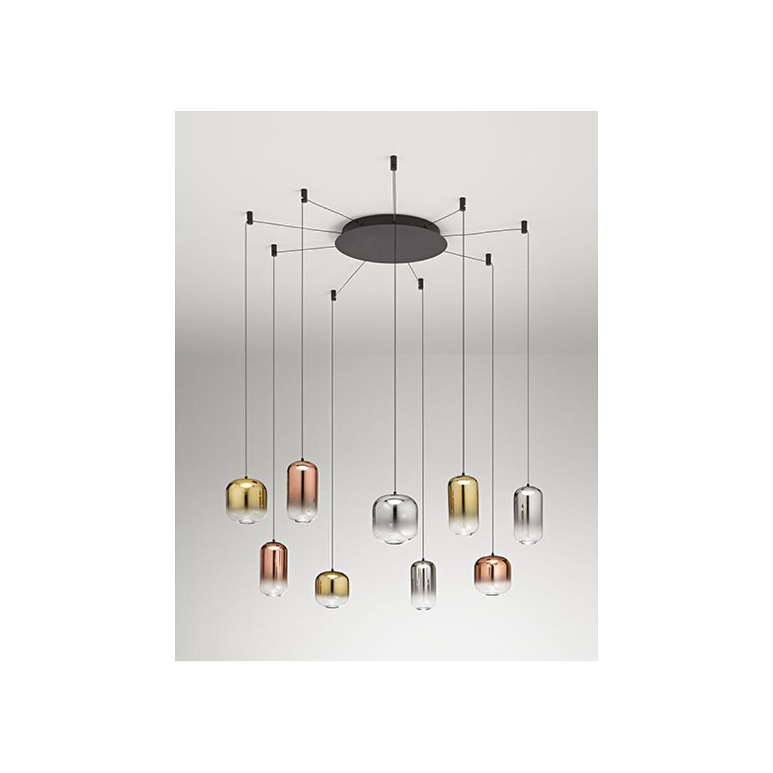 8158 HUNTER SOSPENSIONE CON DECENTRO LED 25W LUCE 3000K CON 5 LUCI IN VETRO TRASPARENTE...