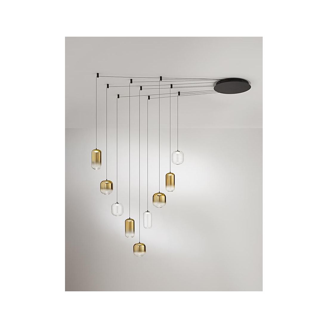 8158 HUNTER SOSPENSIONE CON DECENTRO LED 25W LUCE 3000K CON 5 LUCI IN VETRO TRASPARENTE...