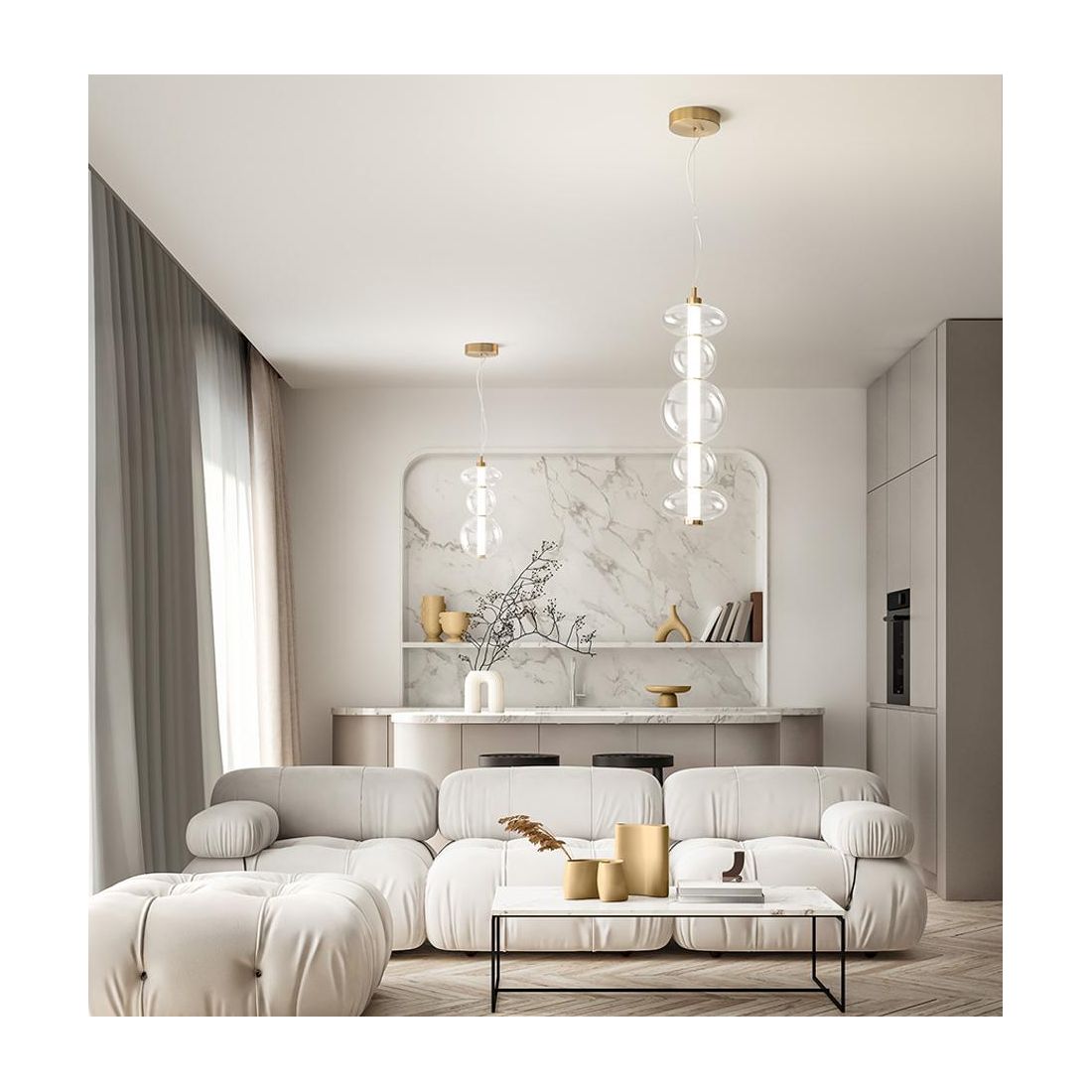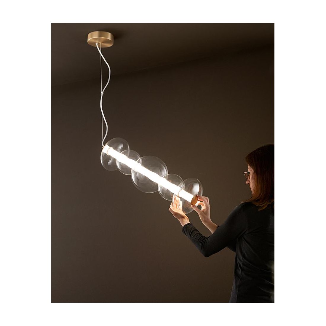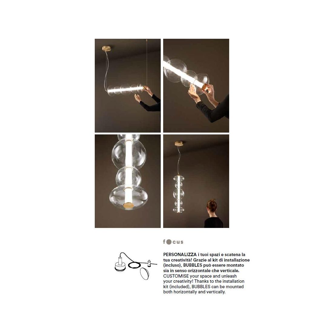 8164 BUBBLES SOSPENSIONE ORO CON VETRI TRASPARENTI LED 50W LUCE 3000K MONTAGGIO...