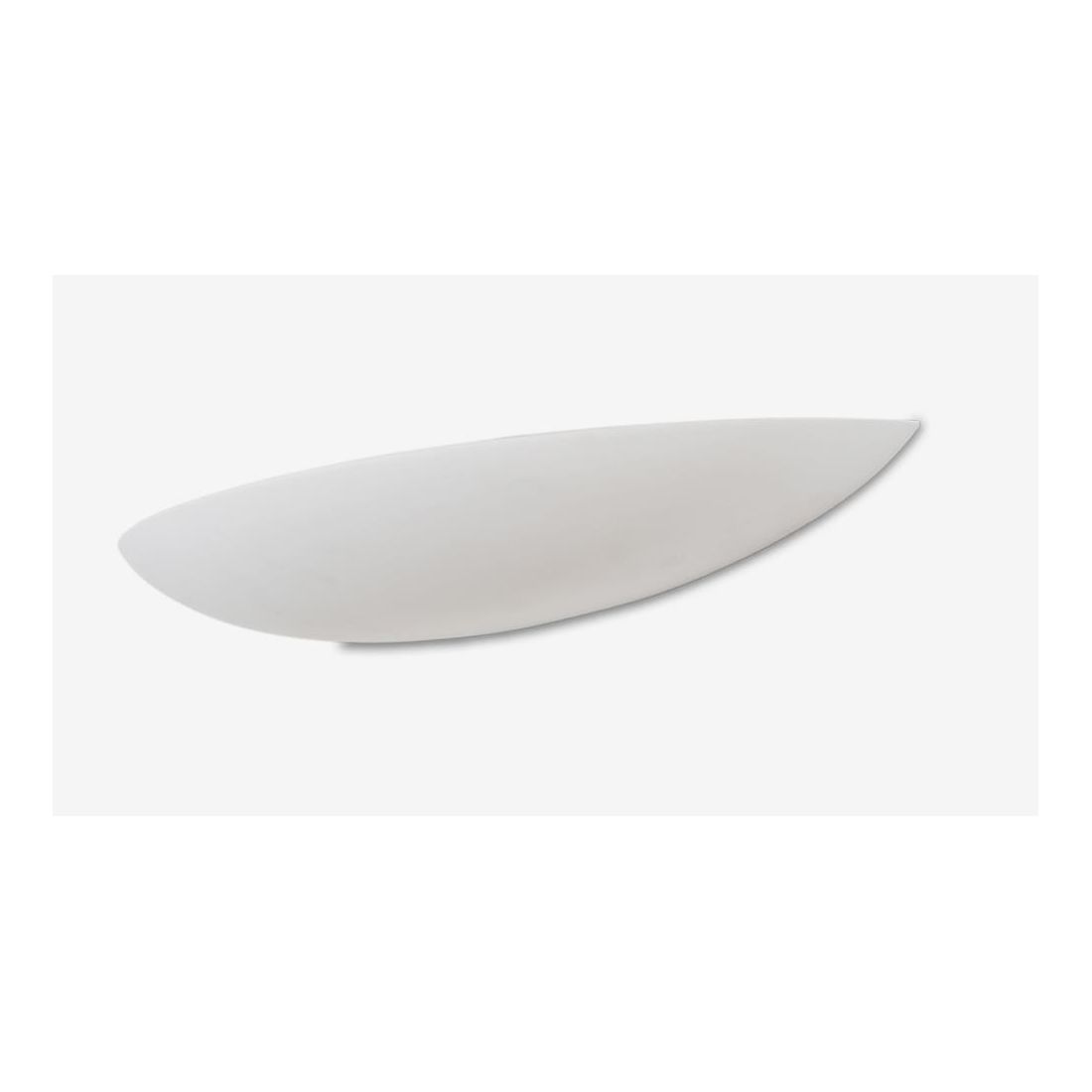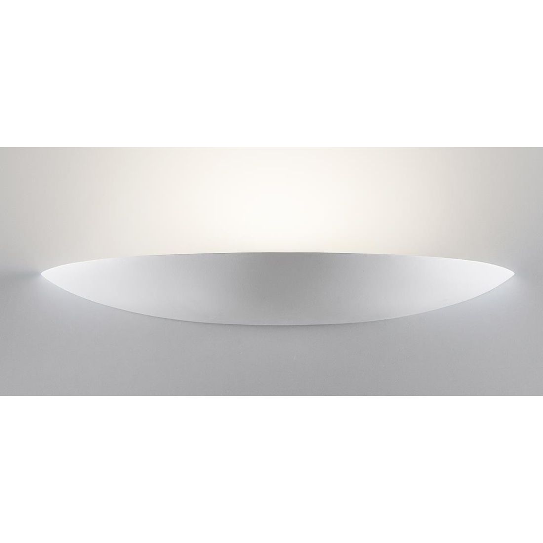Applique da parete, prodotta in Italia dalla Belfiore 9010, realizzata in ceramica effetto gesso, verniciabile a piacimento con un normalissimo colore di pittura, con una struttura che richiama la forma di una mezzaluna sviluppata orizzontalmente che consente alla luce di fuoriuscire direttamente verso l'alto.