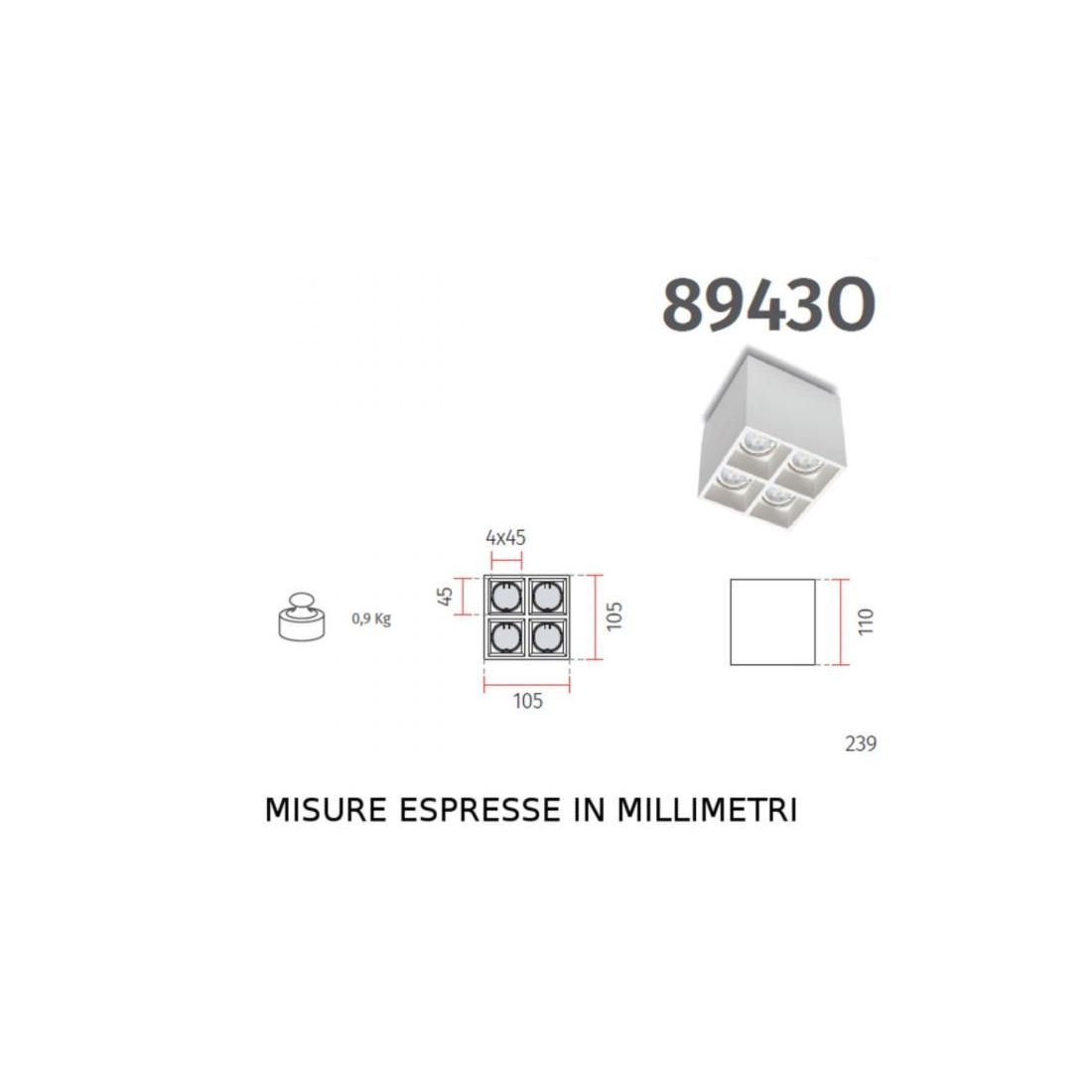 8943O-358943O PLAFONIERA CUBO MODERNA IN CRISTALY VERNICIABILE CON 4 FARETTI GU10 MADE IN ITALY