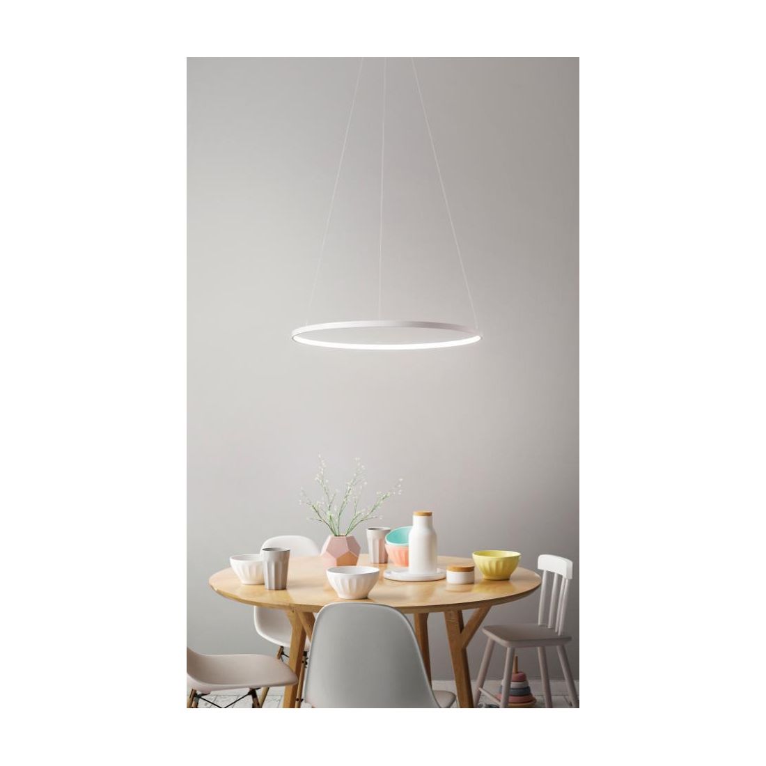 Sospensione lampadario Aluring di Affrlux composta da singolo anello realizzato in metallo bianco opaco o nero esternamente (a vostra scelta) con all'interno il diffusore in acrilico bianco a copertura delle strip led. Un lampadario sospensione da design ultramoderno con una linea semplice con un ottima luminosità.