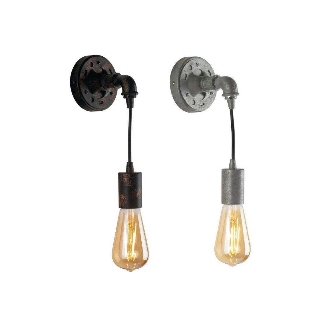 Piccola applique a parete con uno stile vintage retrò che si presenta con la montatura, composta da tubo idraulico, realizzata in metallo con effetto Ruggine oppure Zincato (a vostra scelta) che dona al prodotto un’estetica unica e distintiva arricchita da particolari volutamente "vissuti" che conferiscono alla sospensione un carattere autentico e artigianale.
