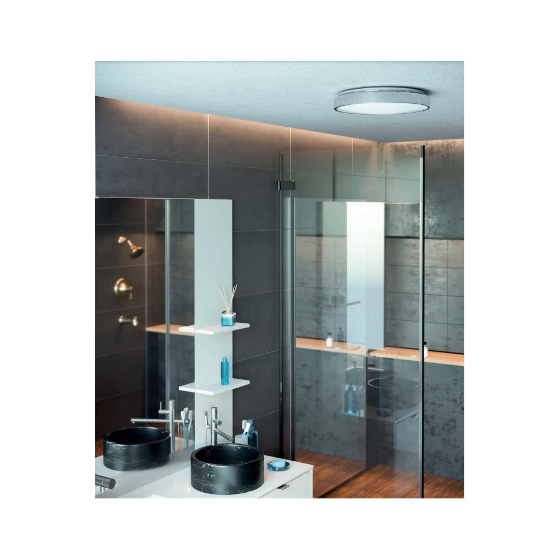 Con il suo grado di protezione IP44, questa plafoniera è progettata per resistere a vapori, spruzzi d’acqua e umidità, rendendola la scelta ideale anche per l’uso in bagno o in altre zone sensibili alle condizioni atmosferiche.