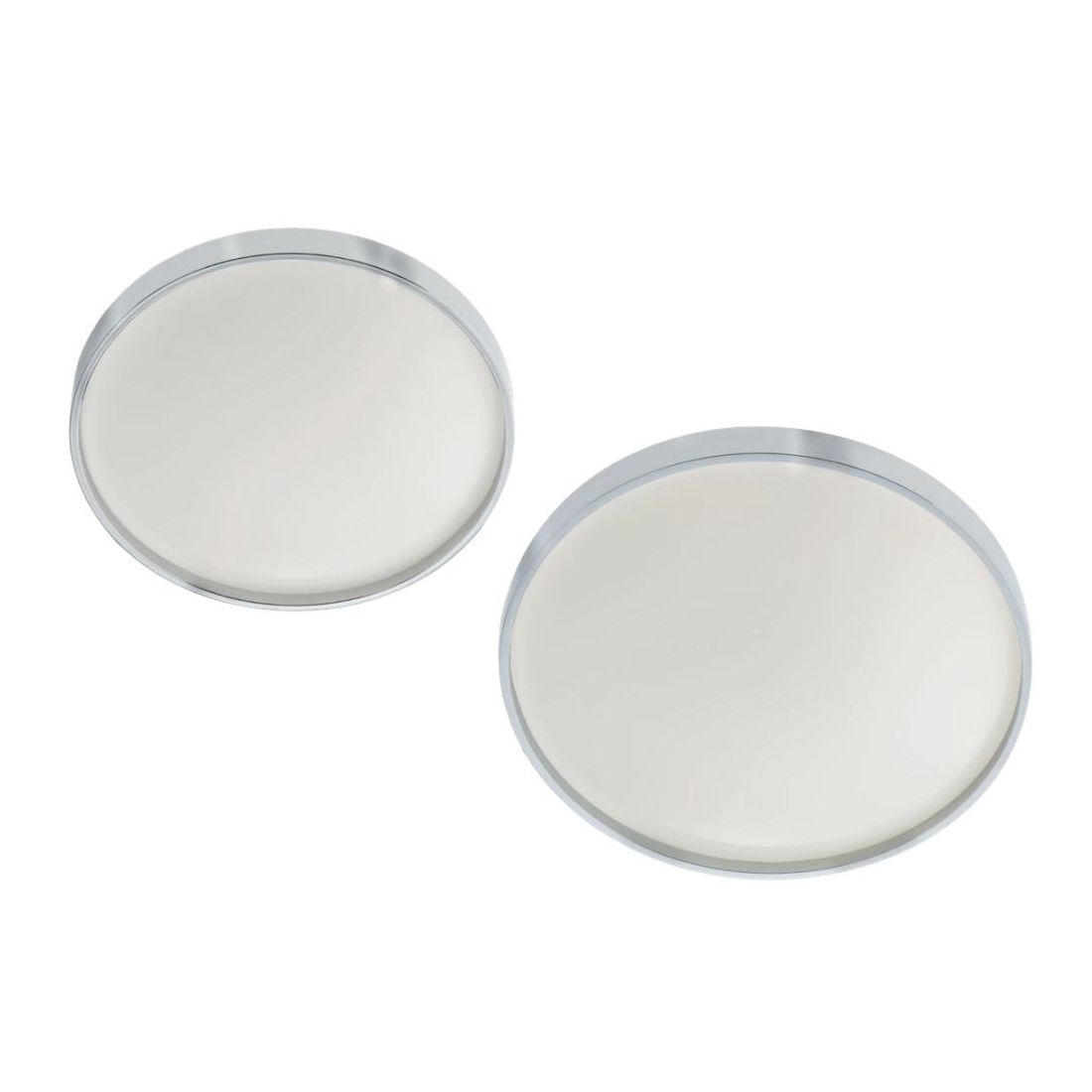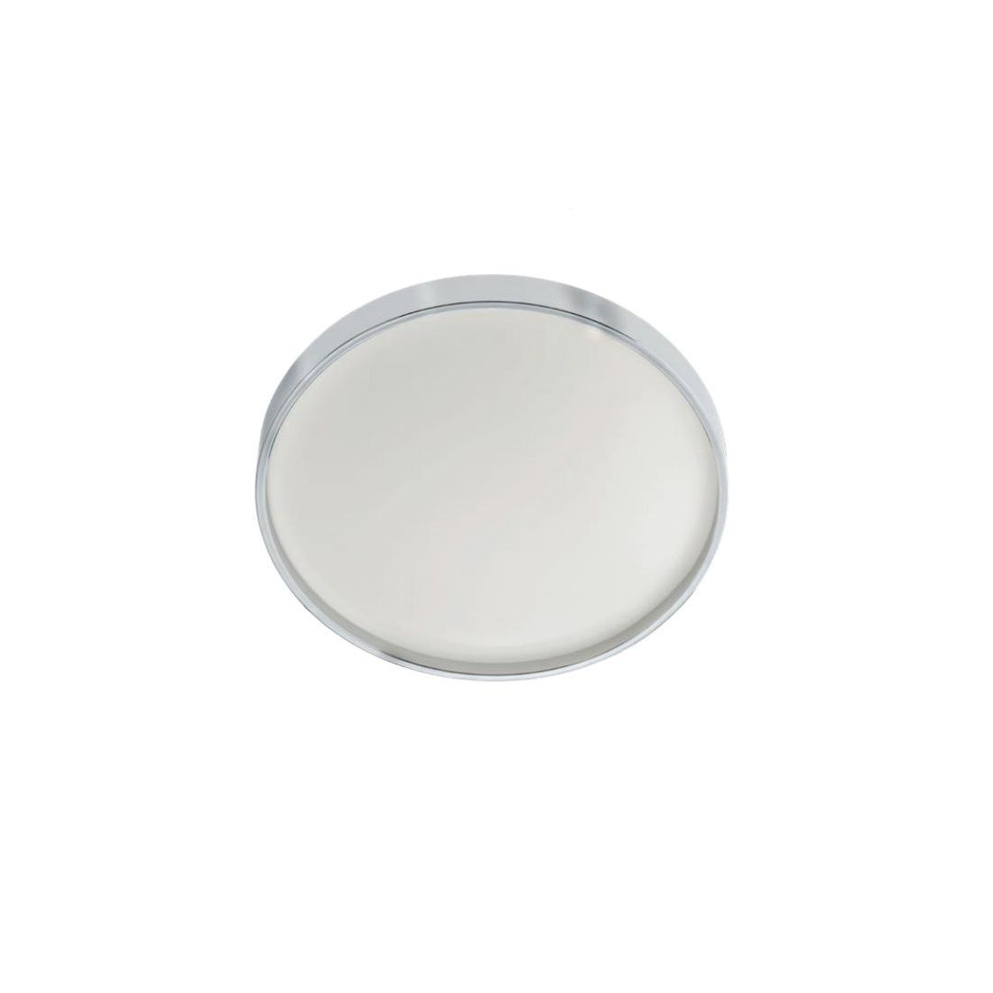 Plafoniera con un design moderno realizzata con una struttura in metallo verniciato bianco, impreziosita da una cornice in PMMA cromato che abbraccia il diffusore opalino, sempre in PMMA. Il diffusore opalino è progettato per emettere una luce diffusa e uniforme creando un’atmosfera accogliente e funzionale.