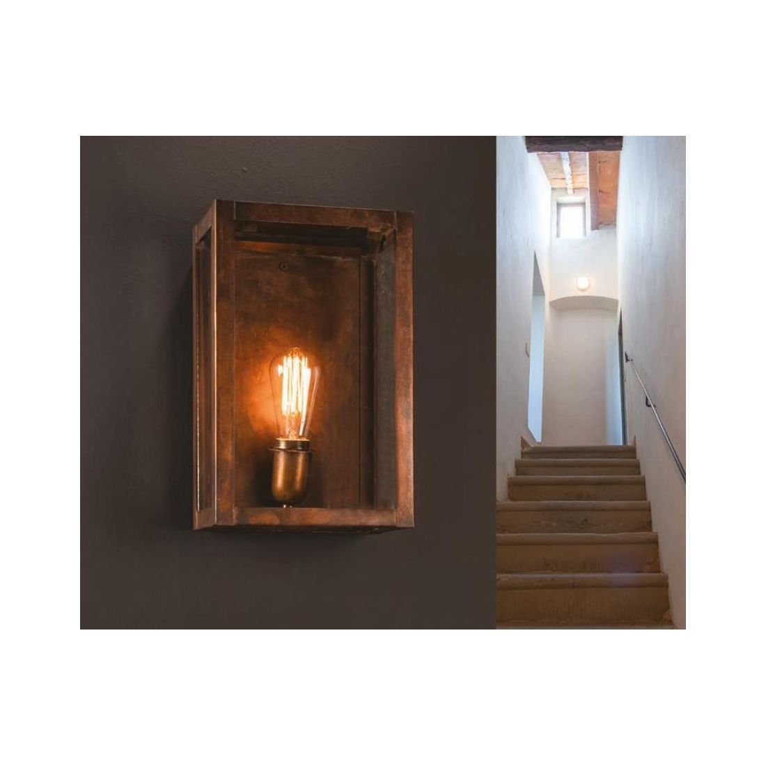 LANTERNA PORTACANDELE QUADRATA IN OTTONE INVECCHIATO MADE IN ITALY DELLA IMAS