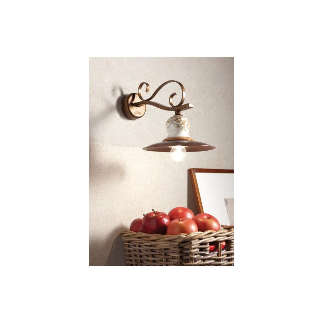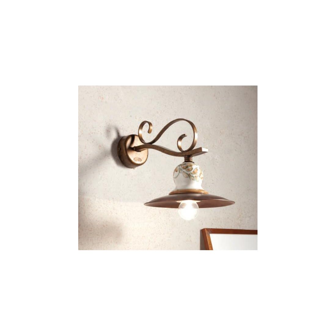 50020-20A54APPLIQUE CON PIATTO IN OTTONE E TERRACOTTA IN STILE RUSTICO PRODOTTO IN ITALIA DALLA IMAS