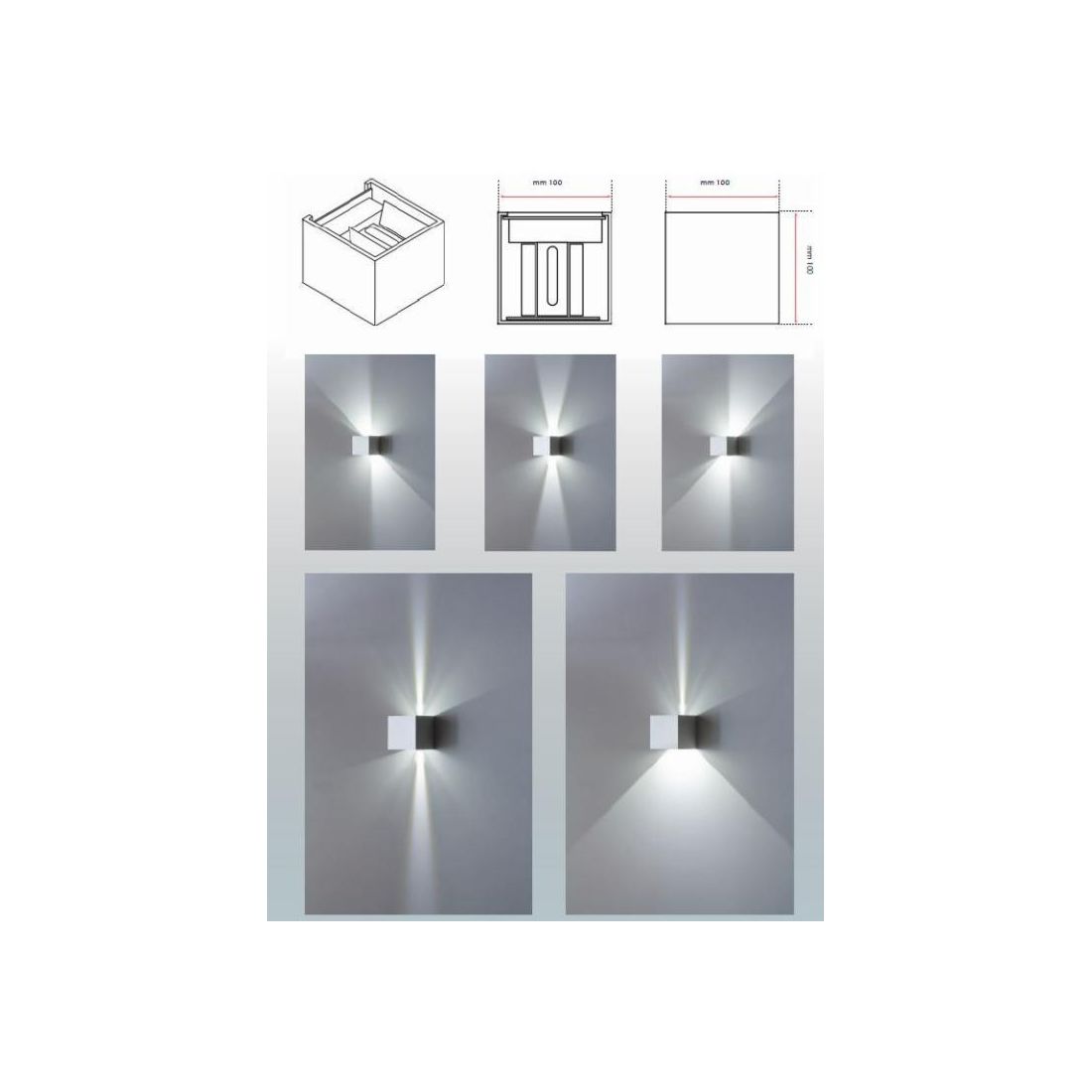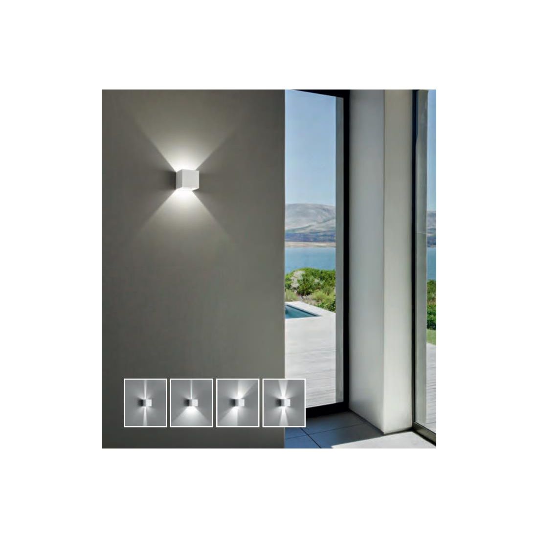 Cubo 916 è un design moderno che installato a parete ha un valore aggiunto grazie alle alette interne che permettono di regolare il flusso luminoso sia sopra che sotto per creare giochi luminosi che più se ne desidera tutte le volte che si vuole.