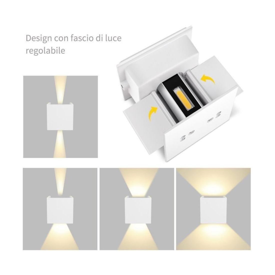 916-21APPLIQUE CUBO BIANCO NERO CORTEN ANTRACITE 6W LED 3000K O 4000K FASCIO LUCE REGOLABILE