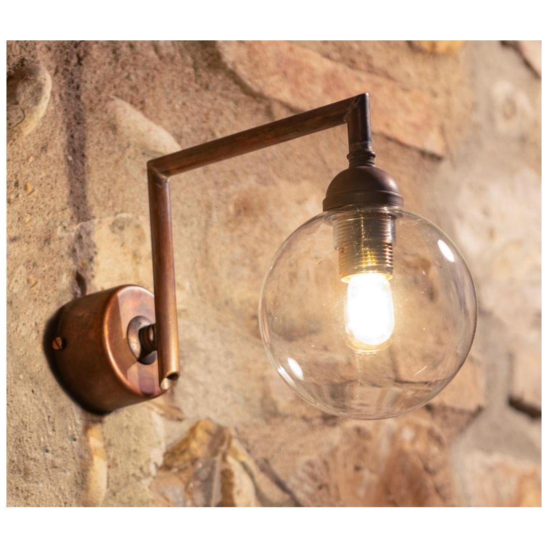 36067/AVAPPLIQUE DA ESTERNO IN OTTONE INVECCHIATO CON SFERA IN VETRO IP44 MADE IN ITALY RUSTICA DELLA IMAS