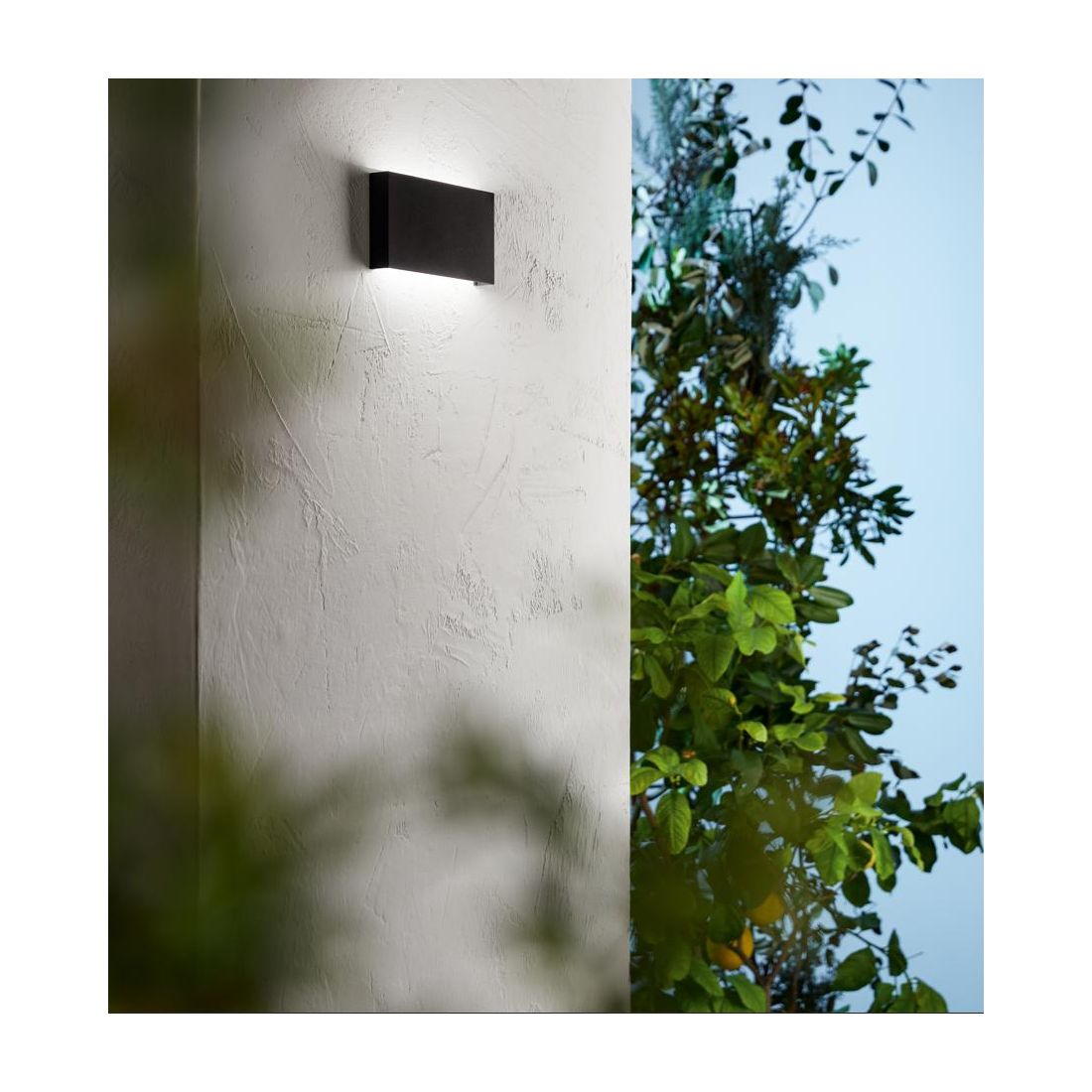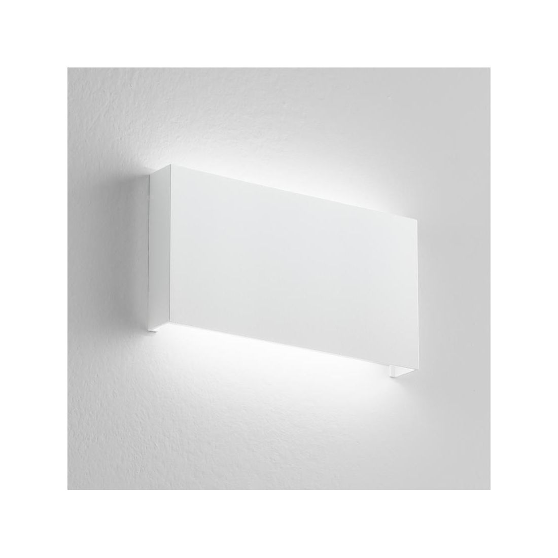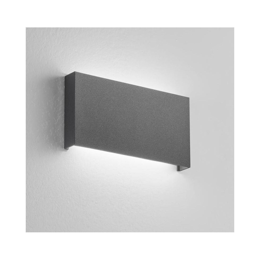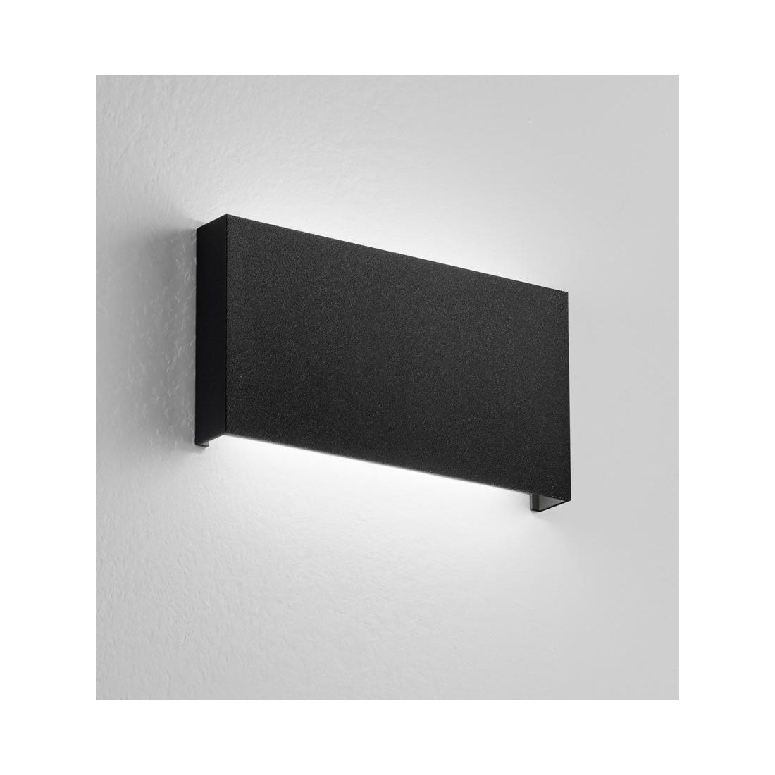 Lampada da parete perfetta per ambienti esterni che si presenta con una struttura rettangolare realizzata in alluminio, che offre resistenza e durabilità nel tempo, con una sorgente LED integrata che garantisce un’illuminazione indiretta sulla parete direzionata sia verso il basso che verso l'alto.