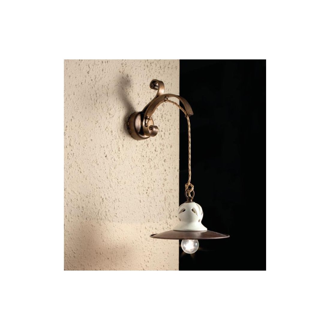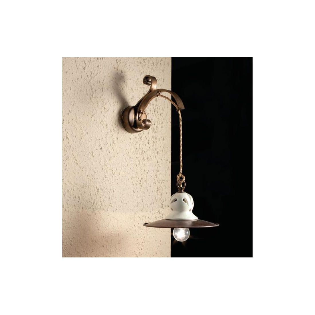 SOSPENSIONE AD ARCO A 2 LUCI IN FERRO BATTUTO CON PIATTI IN CERAMICA DECORATA MADE IN...
