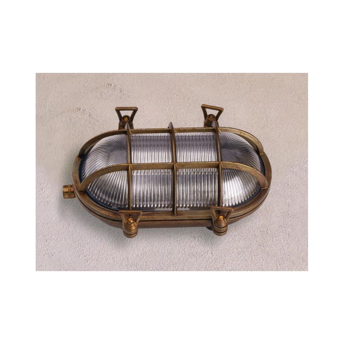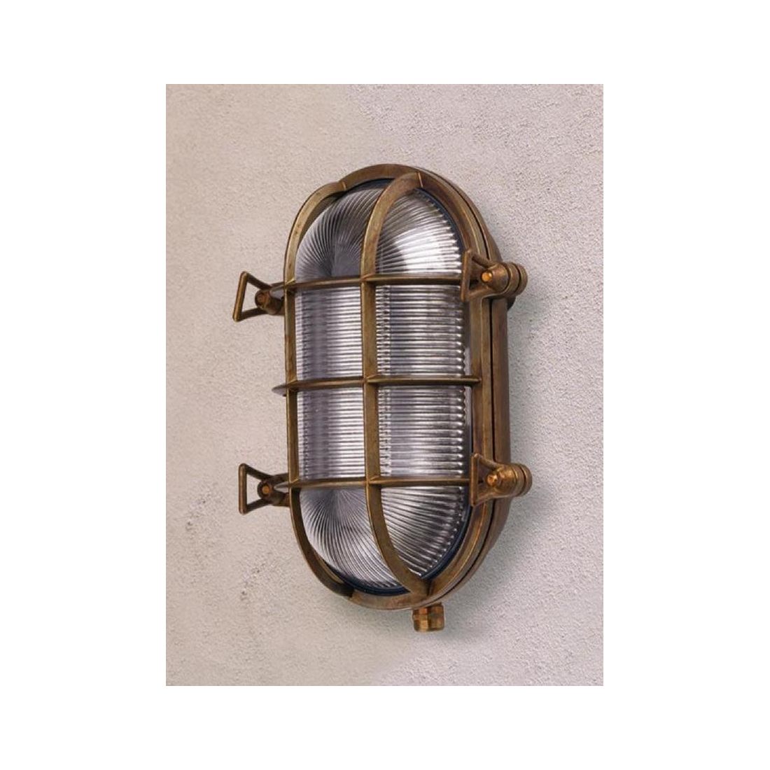 36090APPLIQUE OVALE PER ESTERNI IP44 IN OTTONE INVECCHIATO CON GABBIA MADE IN ITALY
