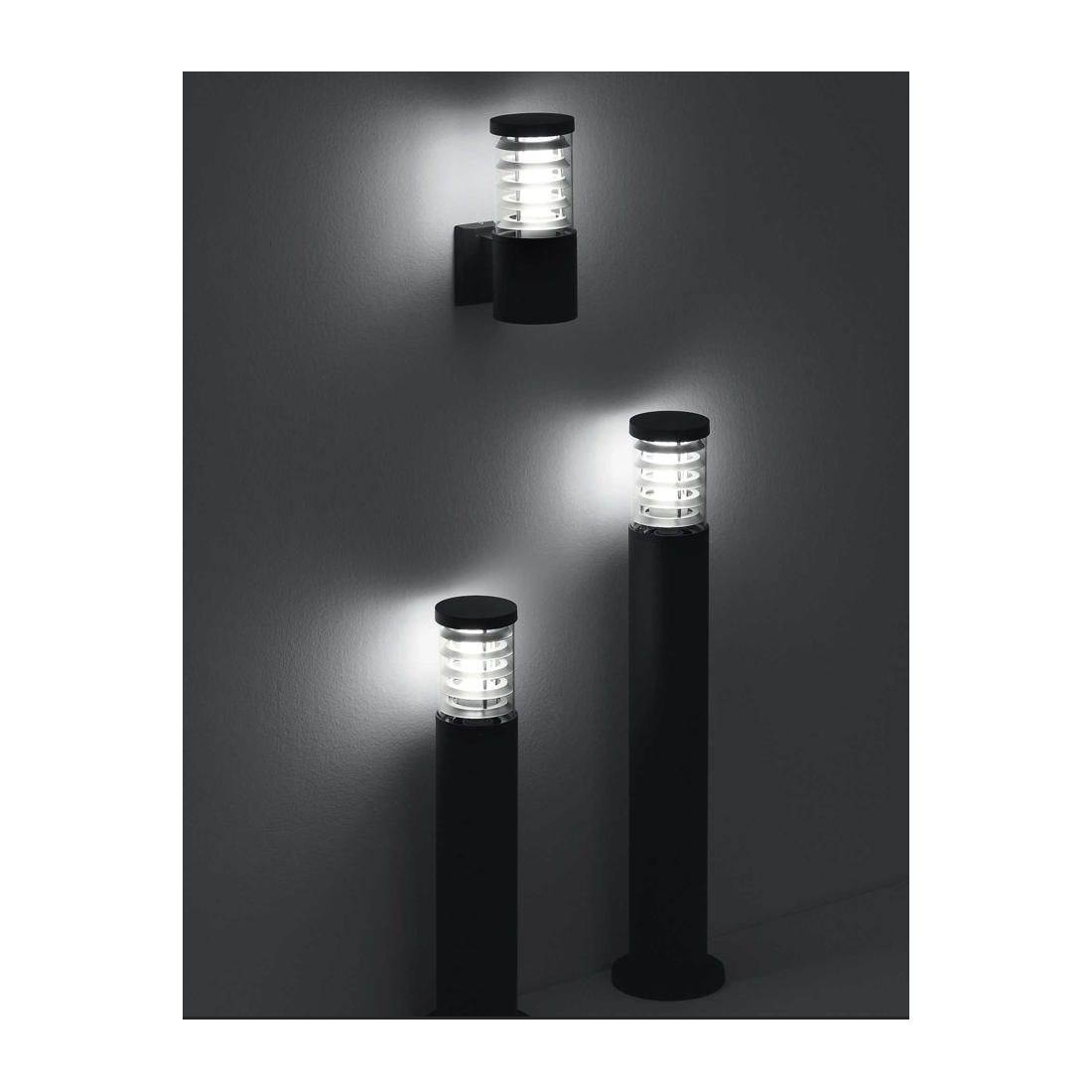 Applique lampada da parete per esterno in alluminio pressofuso verniciato a polvere e poi cotto, disponibile in 5 colori: caffè, antracite, bianco, grigio, nero. Il diffusore è in vetro pirex con all'interno anelli in alluminio per spingere la luce verso il basso. Portalampade interno con attacco 1xE27 dove è possibile montare lampadine led rispettando lo spazio disponibile.
