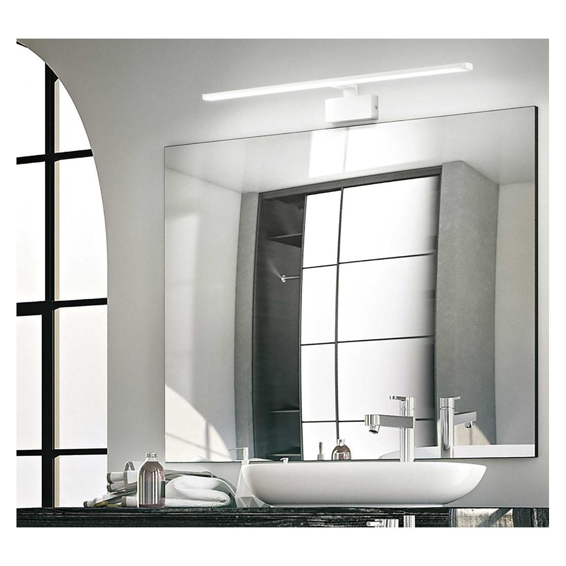 Un applique moderna dove il diffusore produce luce diretta verso il basso, ideale per l'installazione sullo specchio del bagno, sopra ad un quadro in salotto, nel corridoio, nell'ingresso oppure nello studio; integra una sorgente luminosa a Led da 12.5w oppure da 18w con una luce bianca calda 3000k.