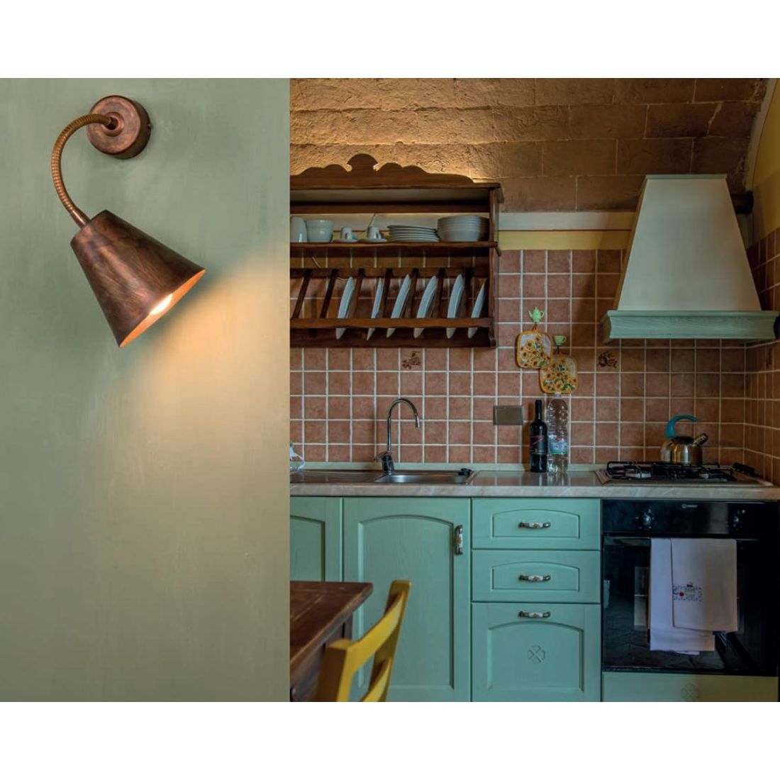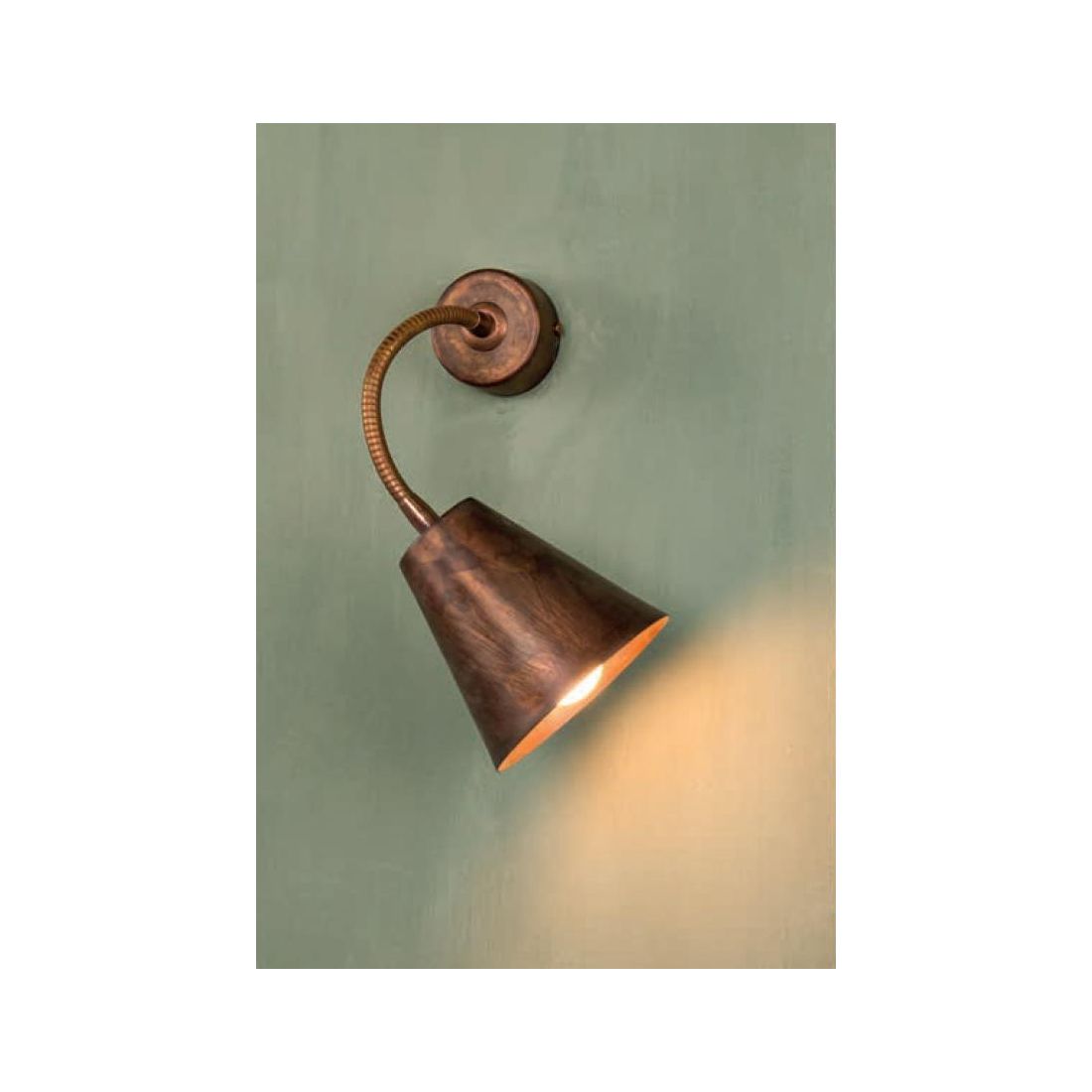 Applique dallo stile rustico realizzata interamente in Ottone anticato dotata di braccio flessibile utile per poter direzionare il punto luce dove più vi necessita.