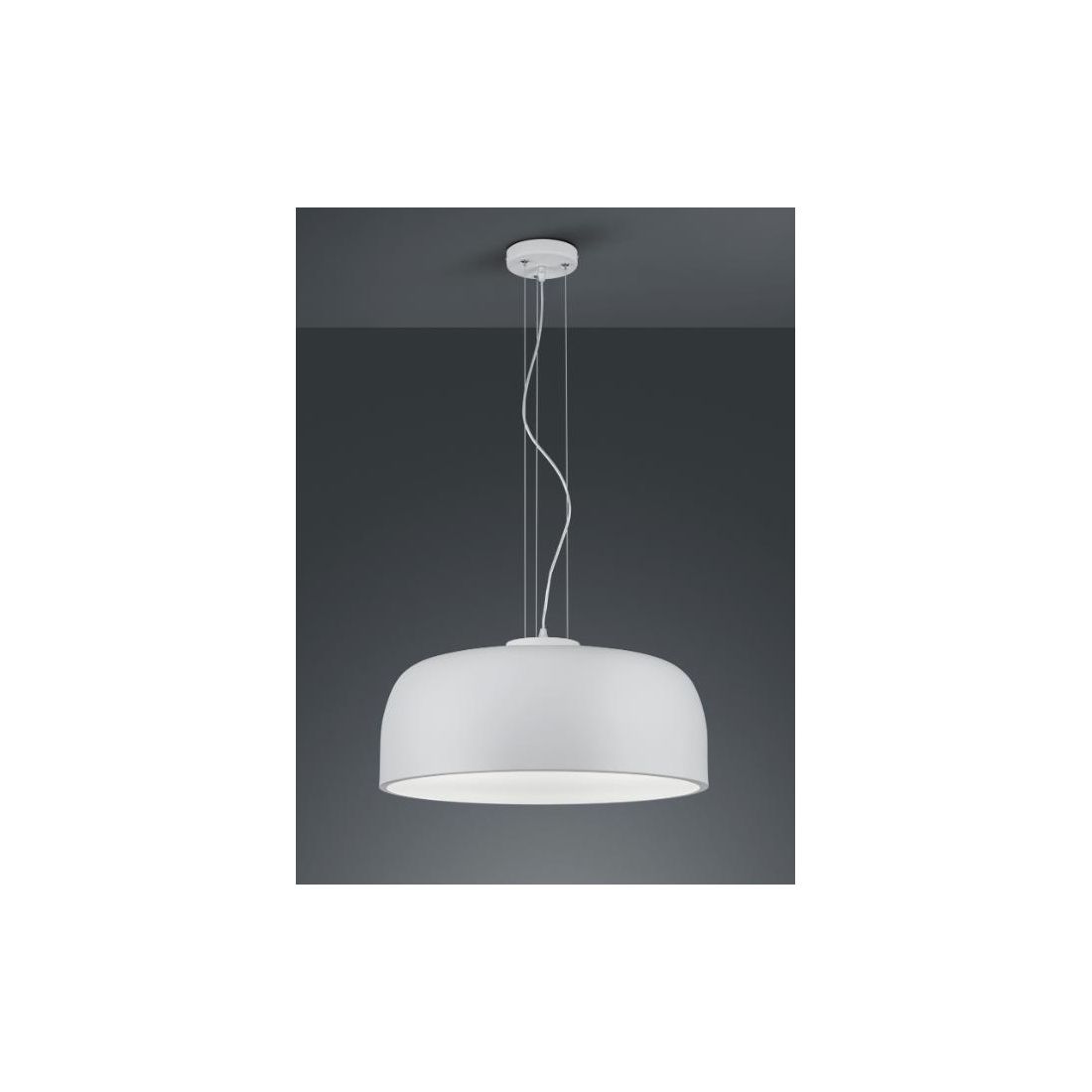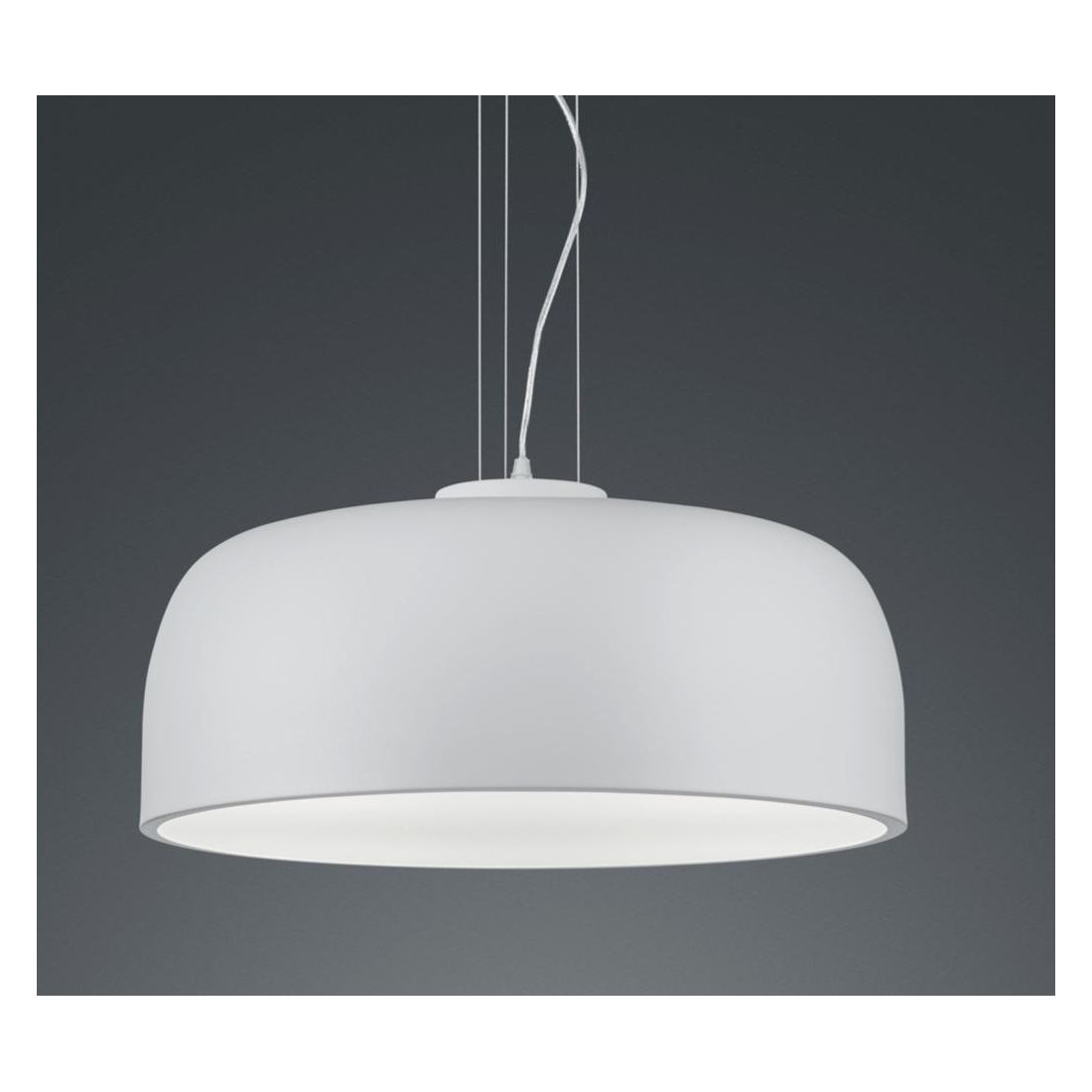 Lampadario a sospensione dal design moderno che si presenta con una struttura realizzata in metallo disponibile nei colori Bianco opaco oppure Nero opaco (a vostra scelta) e con diffusore di luce in metacrilato perfetto per una omogenea diffusione della luce verso il basso senza fastidioso abbagliamento; è munita di cavetti in acciaio regolabili in lunghezza in modo da poter posizionare il punto luce all'altezza da voi più desiderata.
