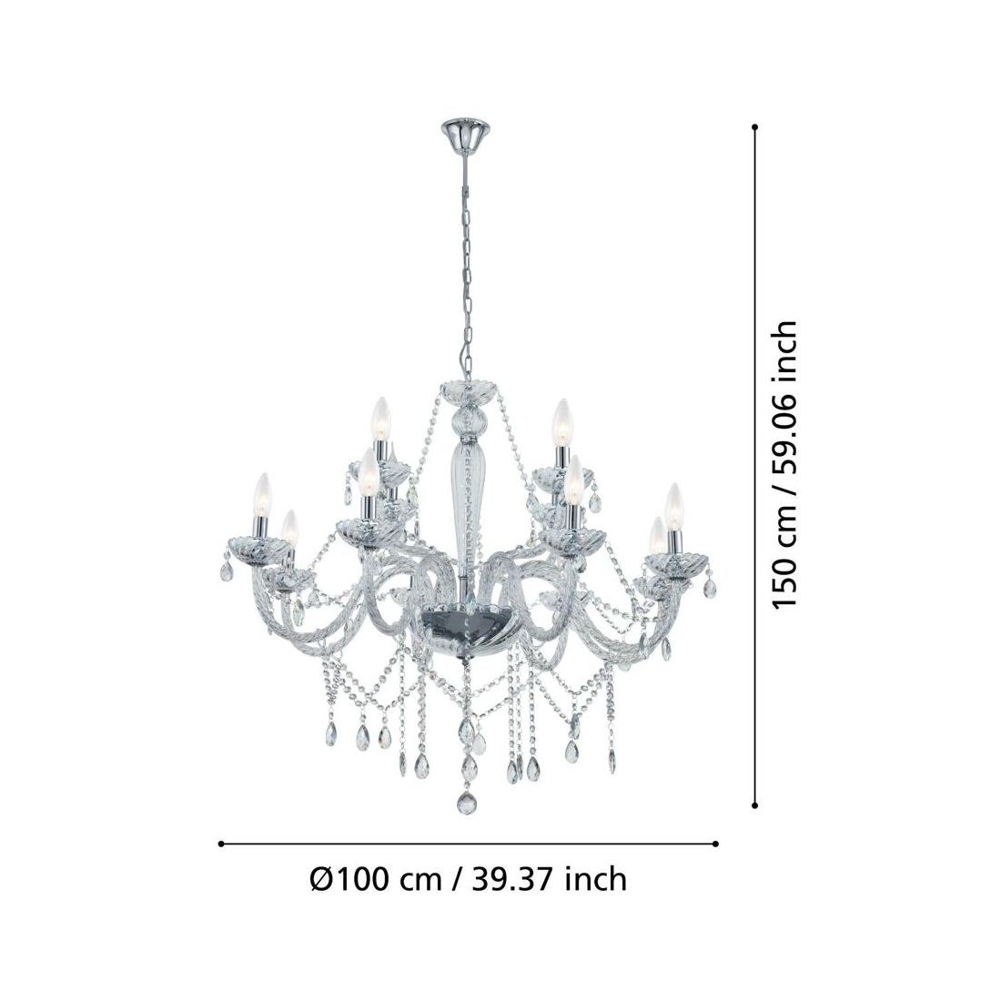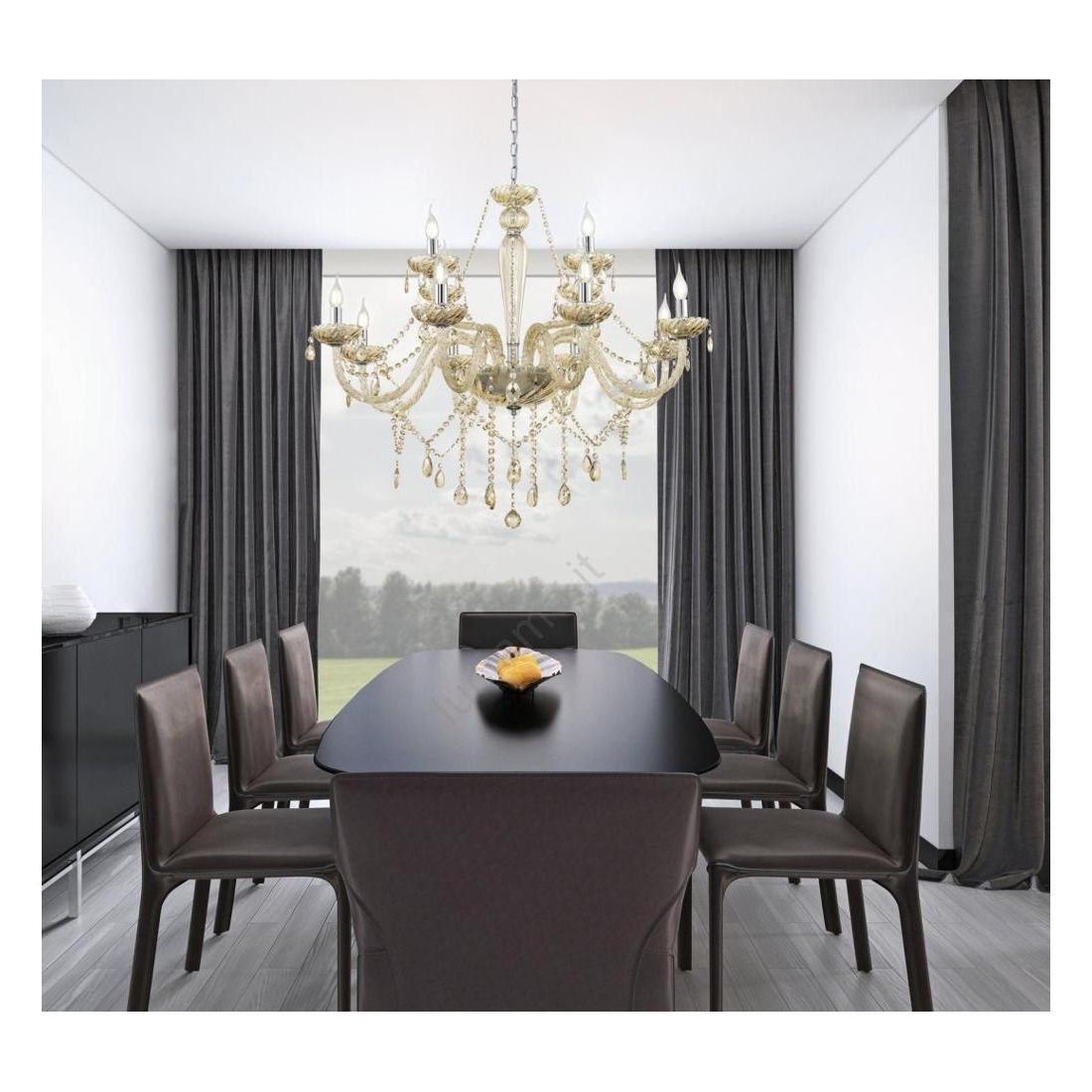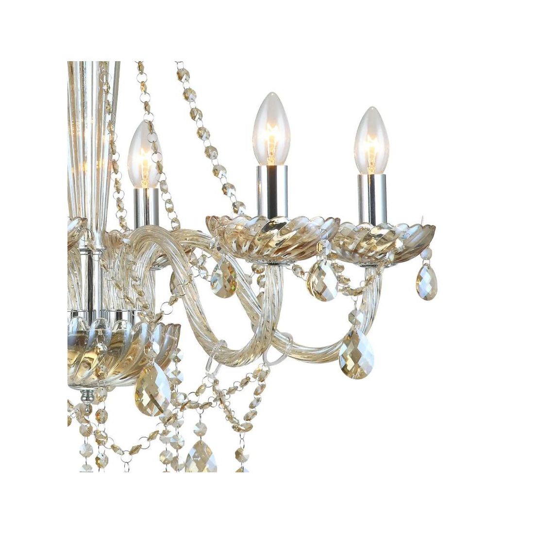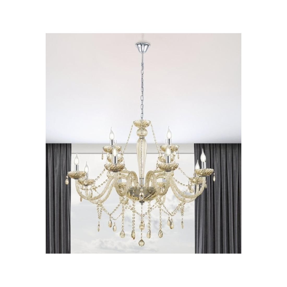 BASILANO LAMPADARIO A BRACCI CLASSICO 8 LUCI IN VETRO TRASPARENTE O COGNAC CON PENDAGLI...