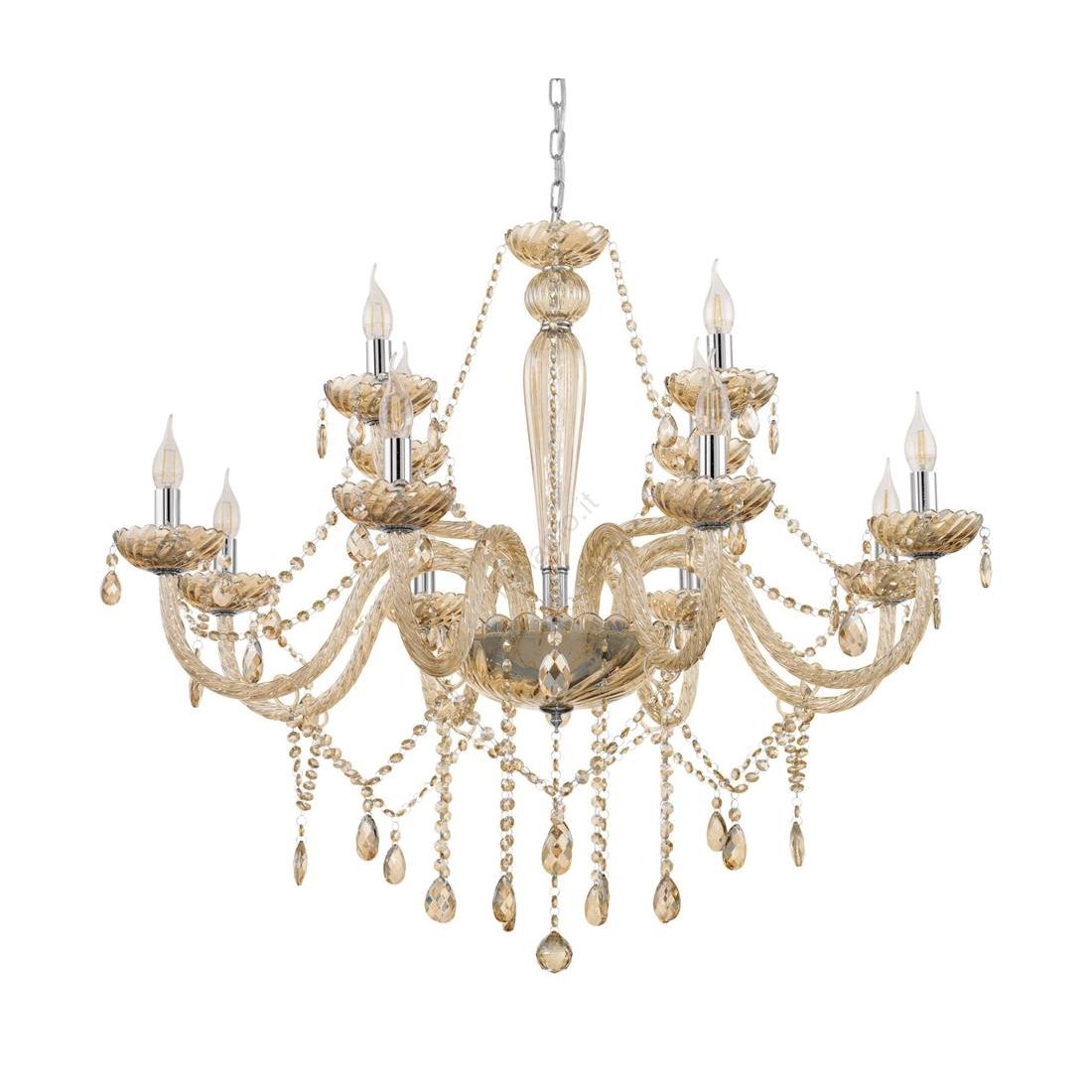 BASILANO LAMPADARIO A BRACCI CLASSICO 18 LUCI IN VETRO TRASPARENTE O COGNAC CON...