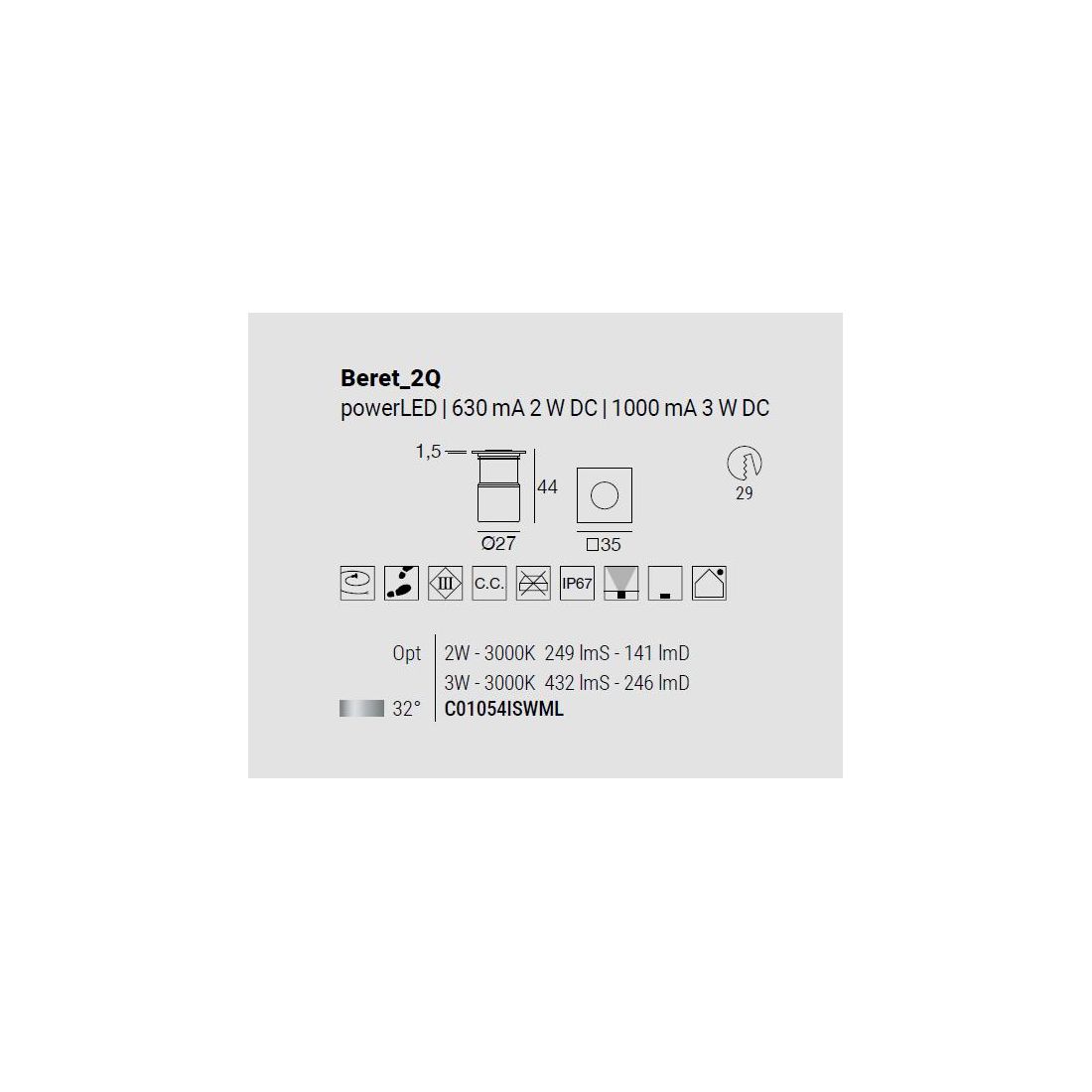 - Se l'alimentazione viene impostata a 630 mA, il faretto fornisce una potenza di 2W;