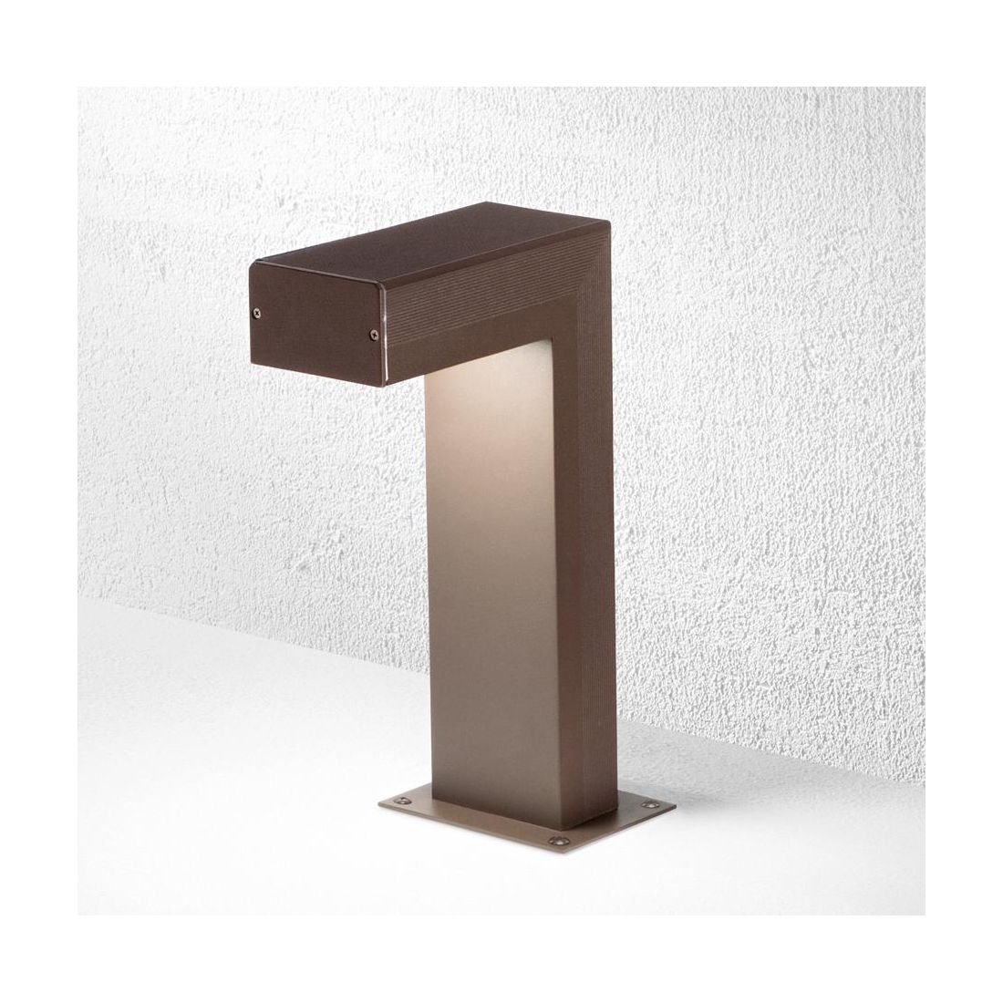 Palo da esterno realizzato in alluminio con una finitura a scelta tra Antracite e Corten con il diffusore in vetro che assicura una distribuzione omogenea della luce; è disponibile in due altezze: 40 cm, ideale per creare percorsi luminosi discreti e decorativi, e 80 cm, perfetto per illuminare aree più ampie.