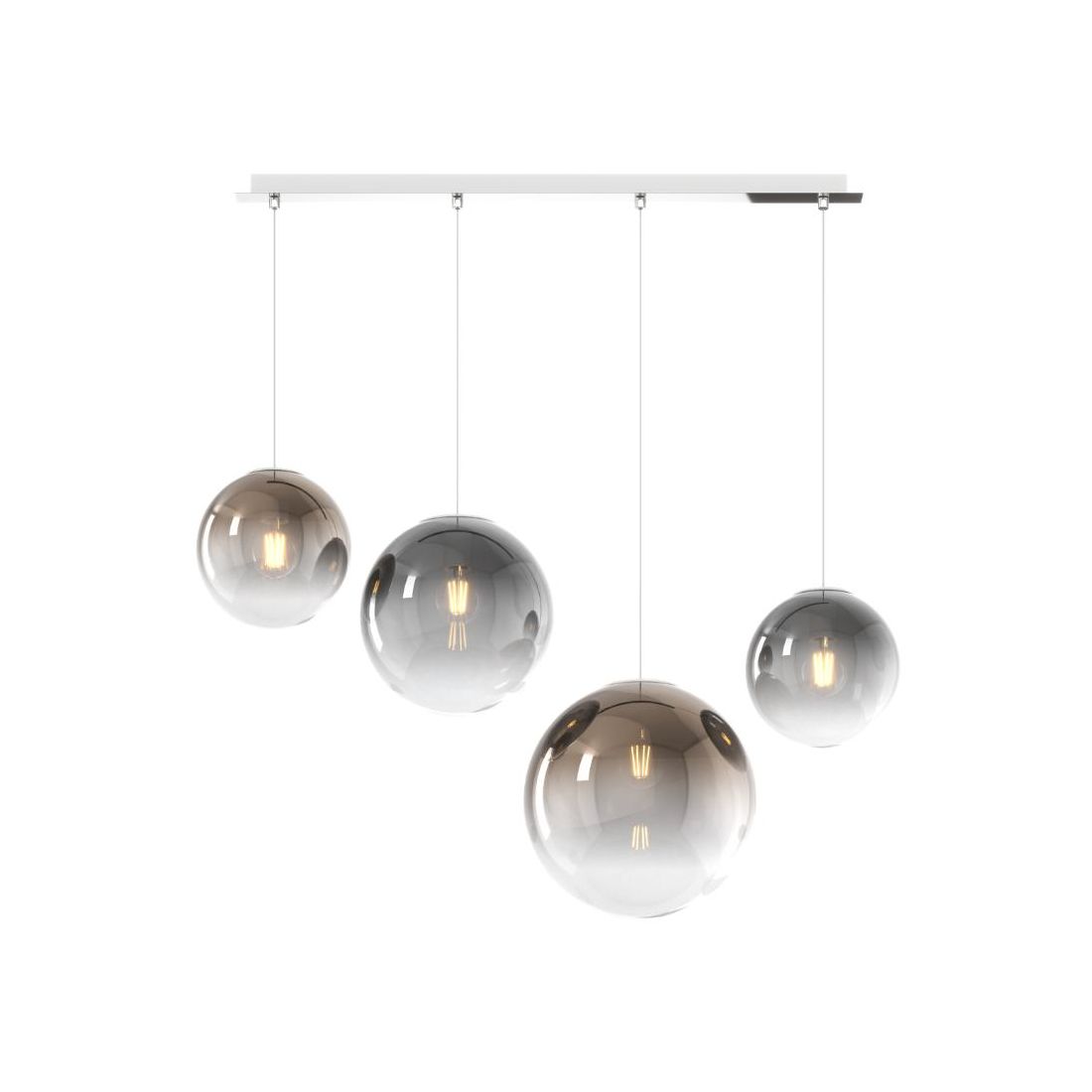 BIG ECLIPSE SOSPENSIONE 4 LUCI BIANCA CON DIFFUSORI A SFERA IN VETRO COLORATO DESIGN...