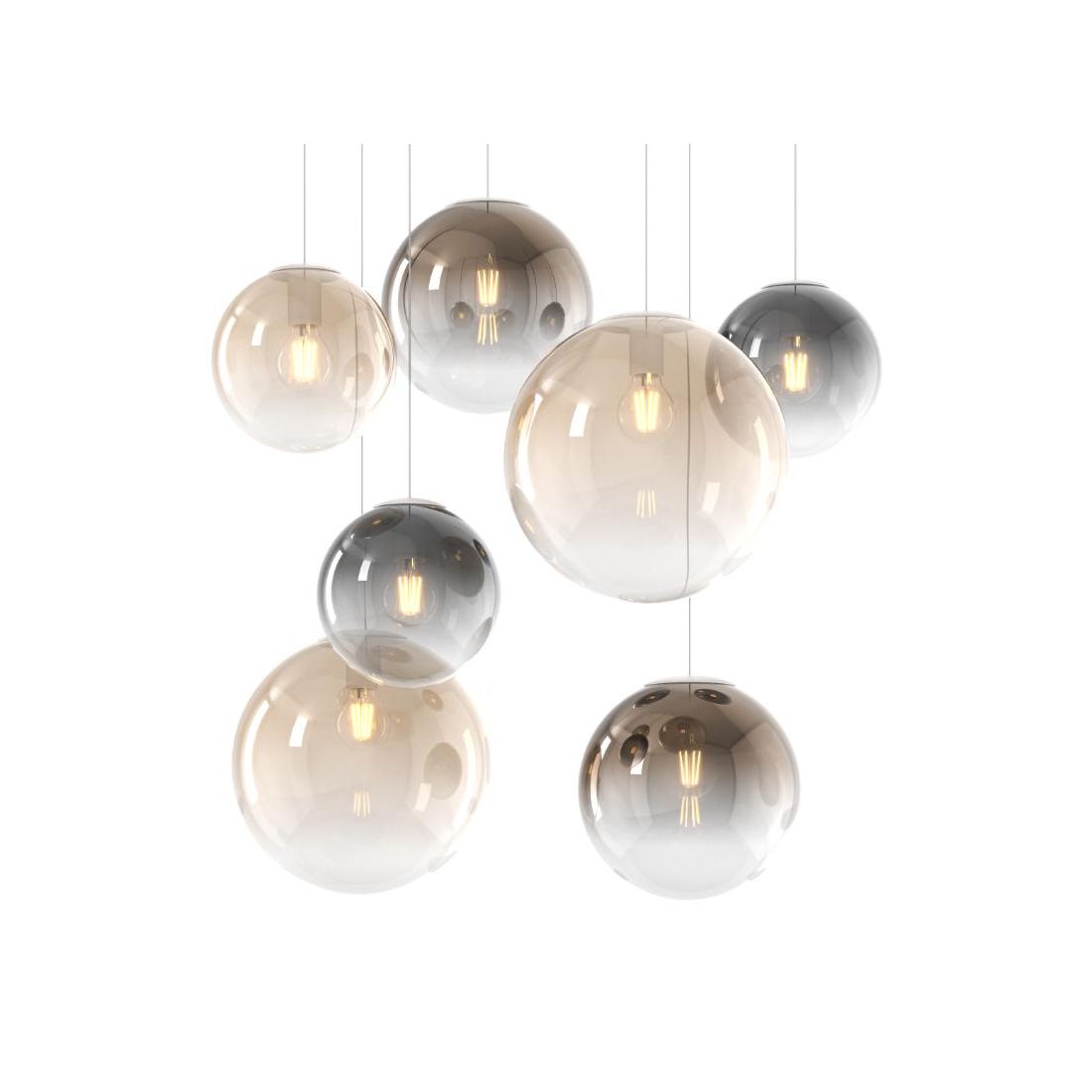 BIG ECLIPSE SOSPENSIONE 3 LUCI CON DIFFUSORI A SFERA IN VETRO COLORATO D20 CM CADAUNO...