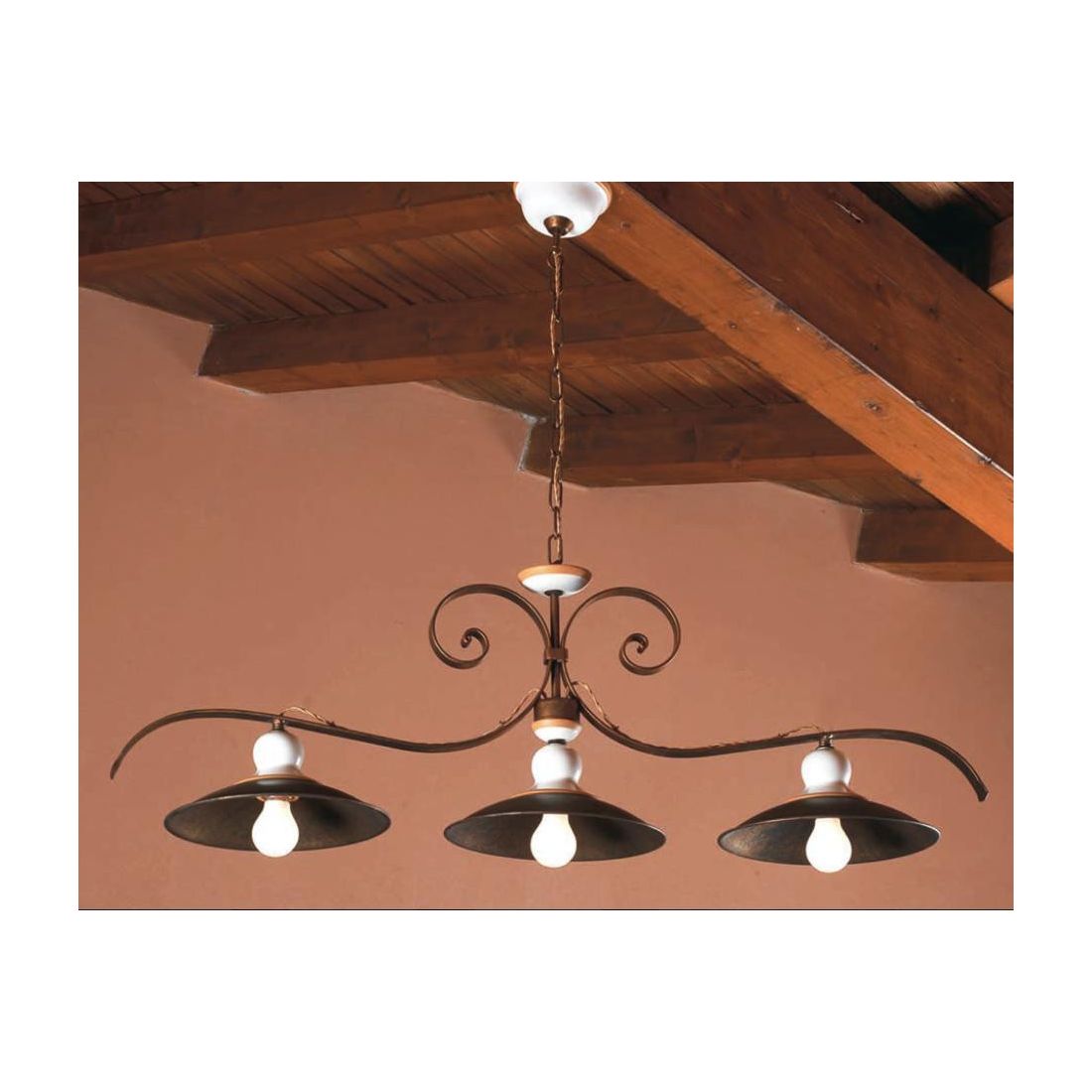 35949-3L54BILANCIERE A 3 LUCI IN FERRO BATTUTO E PIATTI IN OTTONE DELLA IMAS MADE IN ITALY