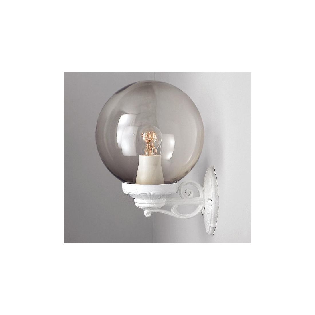 MIZAR GLOBO 25 PALO IN RESINA BIANCA CON SFERA TRASPARENTE FUME' O BIANCO LATTE IP55