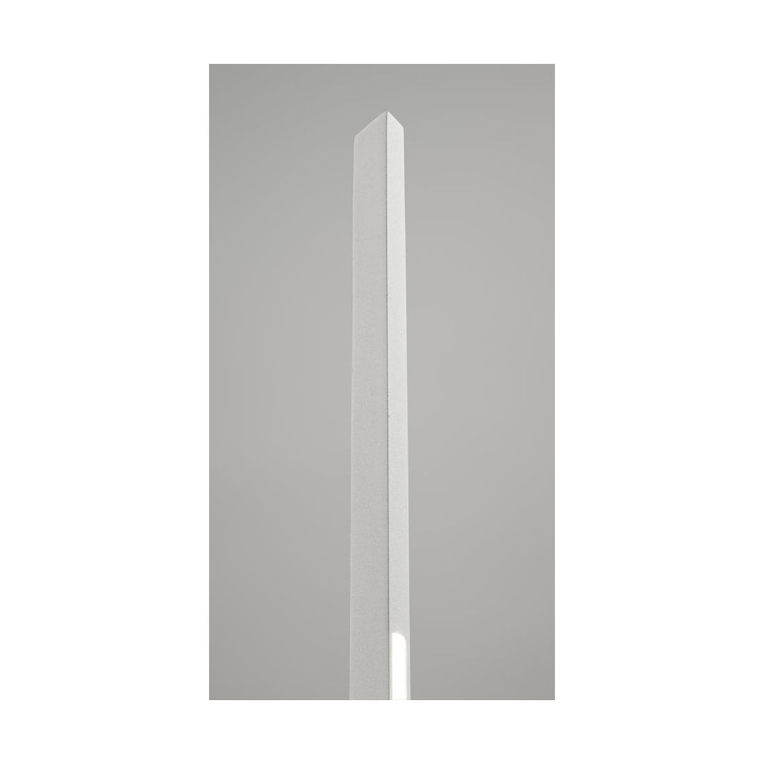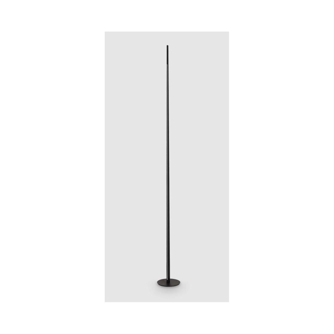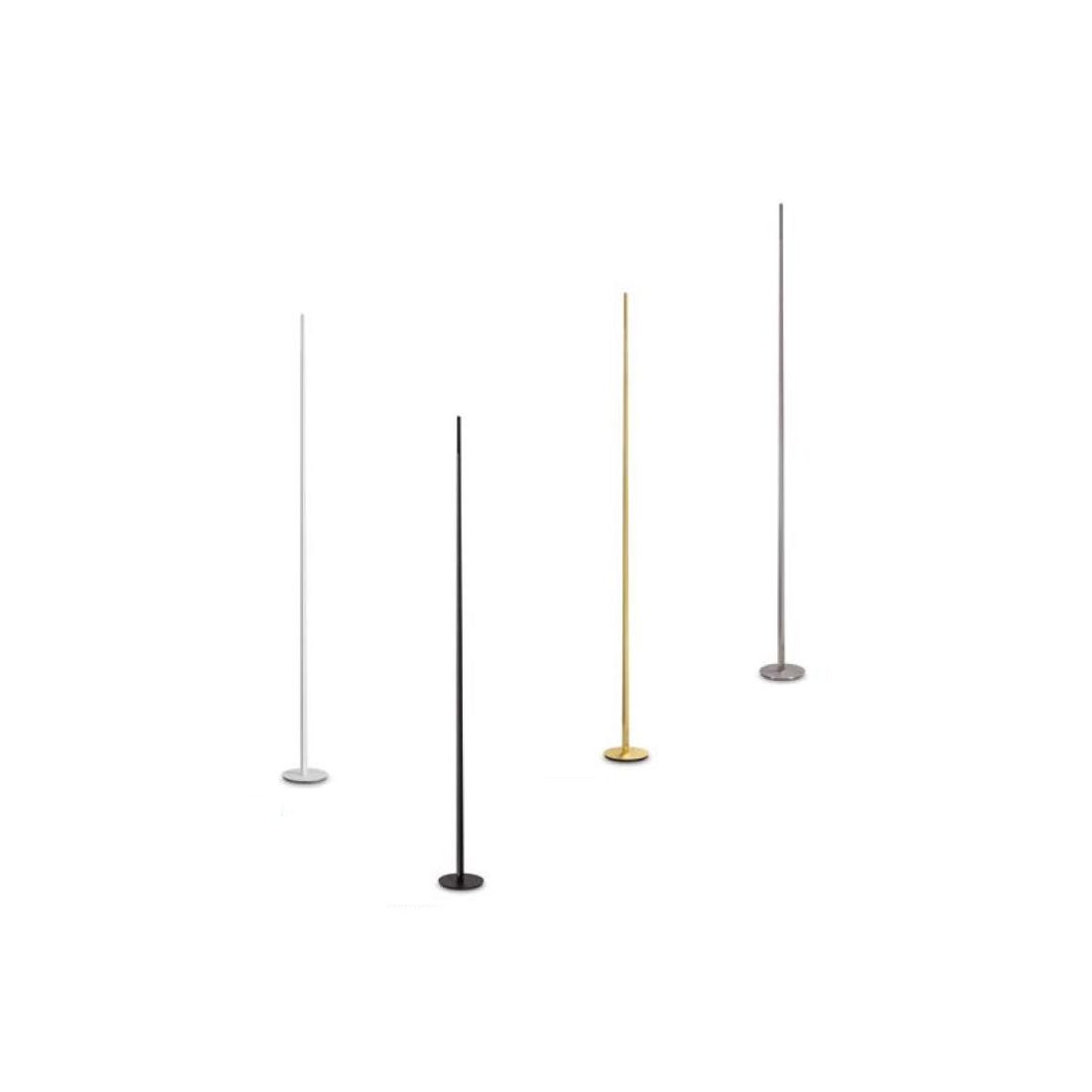 Piantana moderna con un altezza di di cm 250, con base rotonda e struttura, sottile e verticale, realizzate interamente in alluminio nei colori Bianco, Nichel, Nero, Ottone (a vostra scelta); integra una striscia Led laterale lungo tutta la lunghezza dello stelo, protetta da diffusore in silicone opale, che emette una luce uniforme e diffusa.