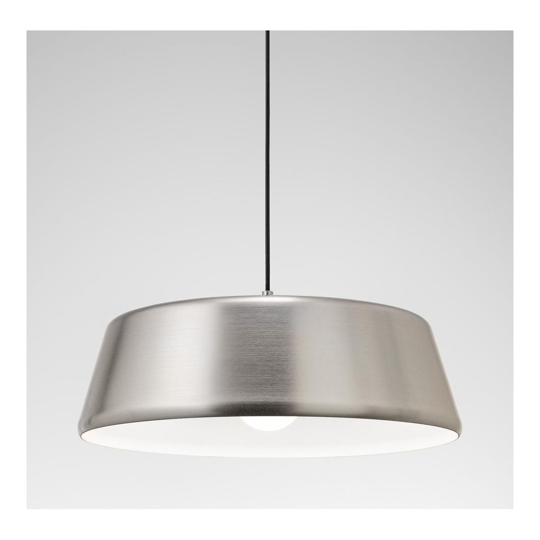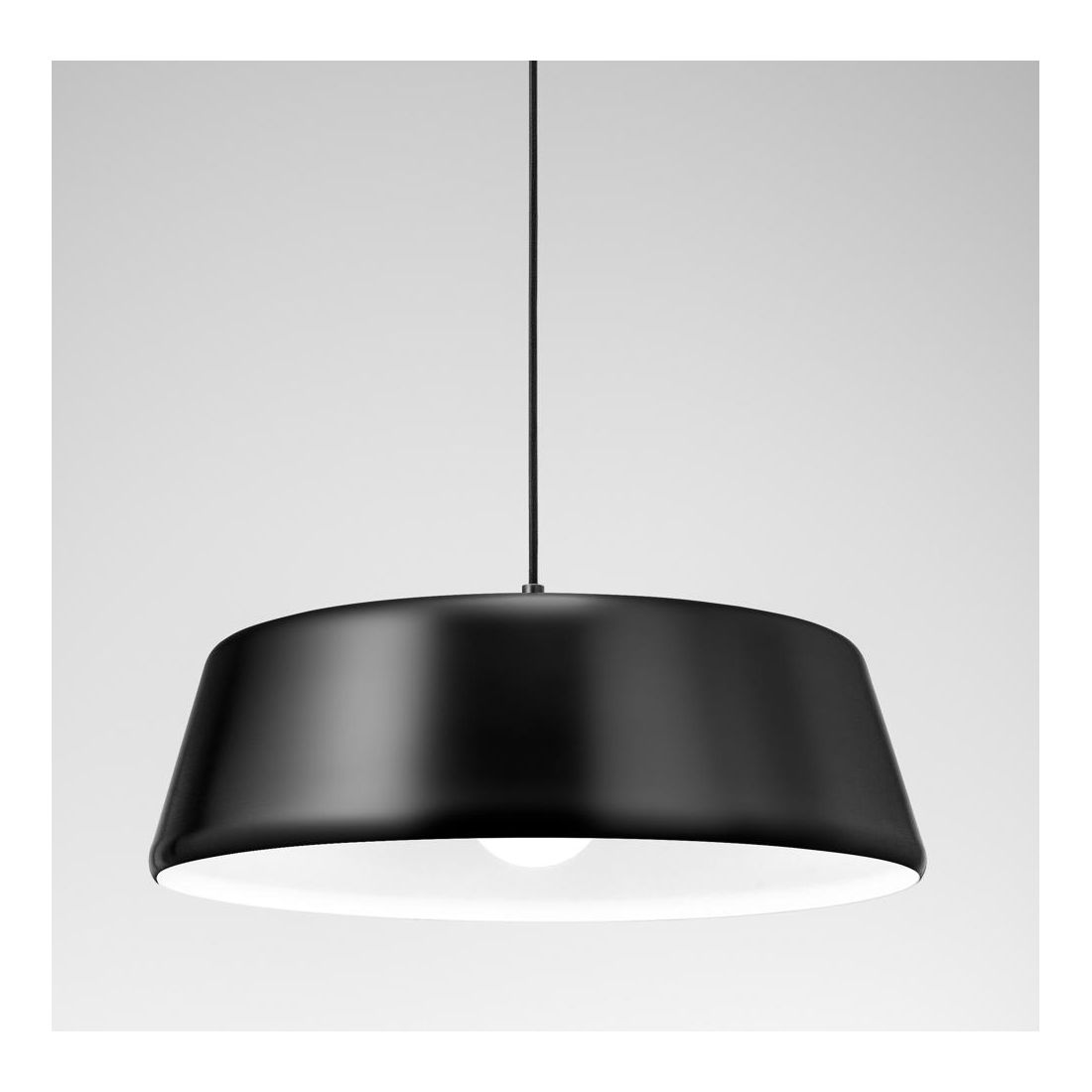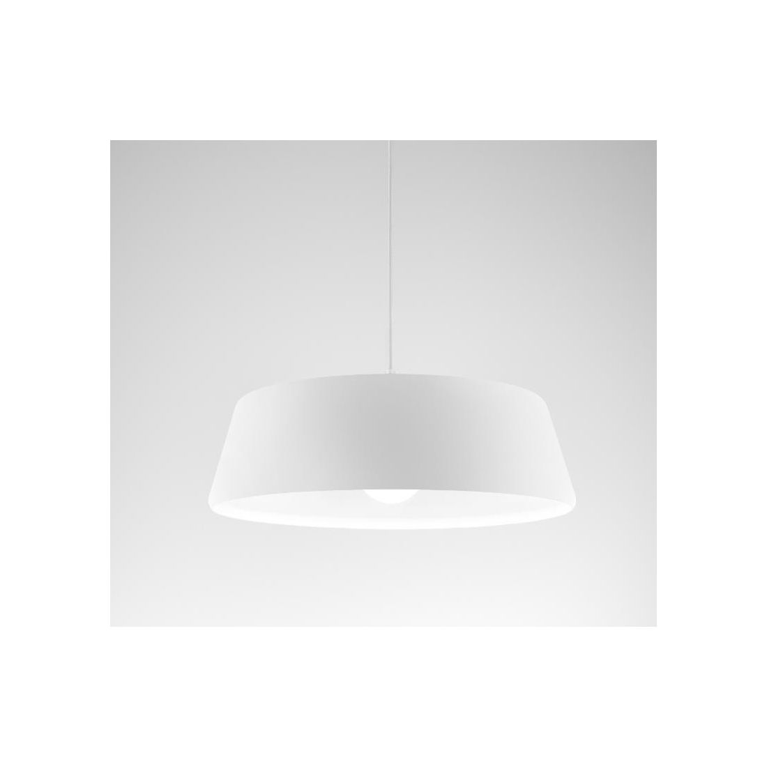 Una sospensione a luce singola con il diffusore dalla forma rotonda schiacciata, diametro cm 50, realizzato in metallo verniciato di bianco nella parte interna mentre esternamente si può avere nei colori: Nero, Bianco, Ottone oppure Nickel; un prodotto utile per chi è alla ricerca di un lampadario con un prezzo accessibile che può essere posizionato a piacimento regolando l'altezza del diffusore donandogli così l'effetto desiderato.